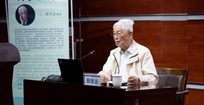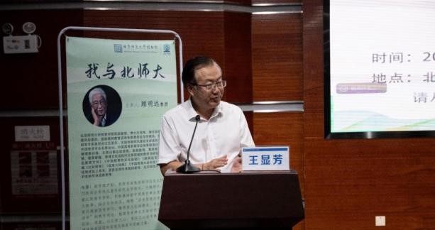 北京师范大学图书馆馆长王显芳主持讲座。他在开场致辞中介绍了“树人大讲堂”的历史与影响,并高度评价了顾明远在教育学研究与教育事业发展中的杰出贡献。在讲座总结中,他指出顾先生是我们心中公认的“大先生”,这是大先生讲述的一场口述史,更是一堂生动的思政课。讲座对于每一位参与者都有非常深刻的启发,启发着我们思考何以可能成为优秀的北师大人,何以可能成为北师大的代言人,何以可能成长为学生眼中的大先生,大先生精神也将进一步激励着大学生的茁壮成长。