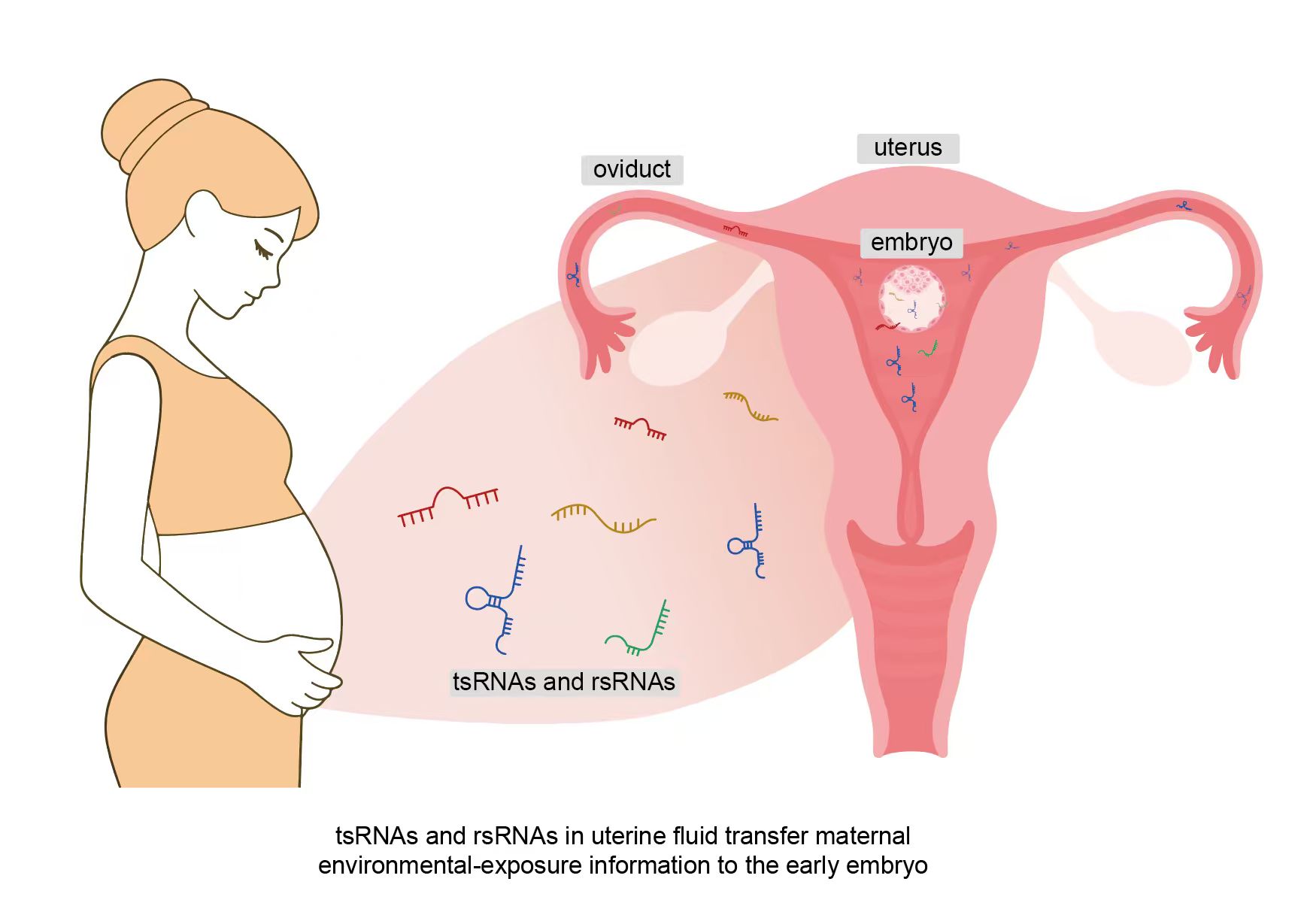前期张莹、侍骏超参与的Science研究首次发现精子tsRNA可传递父源代谢信号(Science 2016),并于2018年在Nature Cell Biology揭示了RNA修饰在其中的关键作用。这些研究建立了“配子小RNA介导环境信息传递”的基础框架。基于妊娠建立研究中发现宫腔液体对于早期胚胎发育和妊娠建立的重要调控作用,2017年他们提出宫腔液可能承载孕早期母体环境信号的非编码小RNA(Trends in Molecular Medicine 2017),但缺乏直接证据。如今,这一假设终于迎来实验验证。