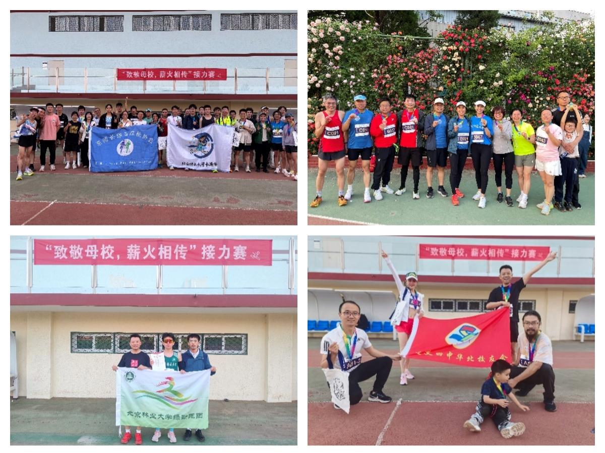比赛后,各跑团争相与“致敬母校、薪火相传”横幅或完赛奖牌合影。