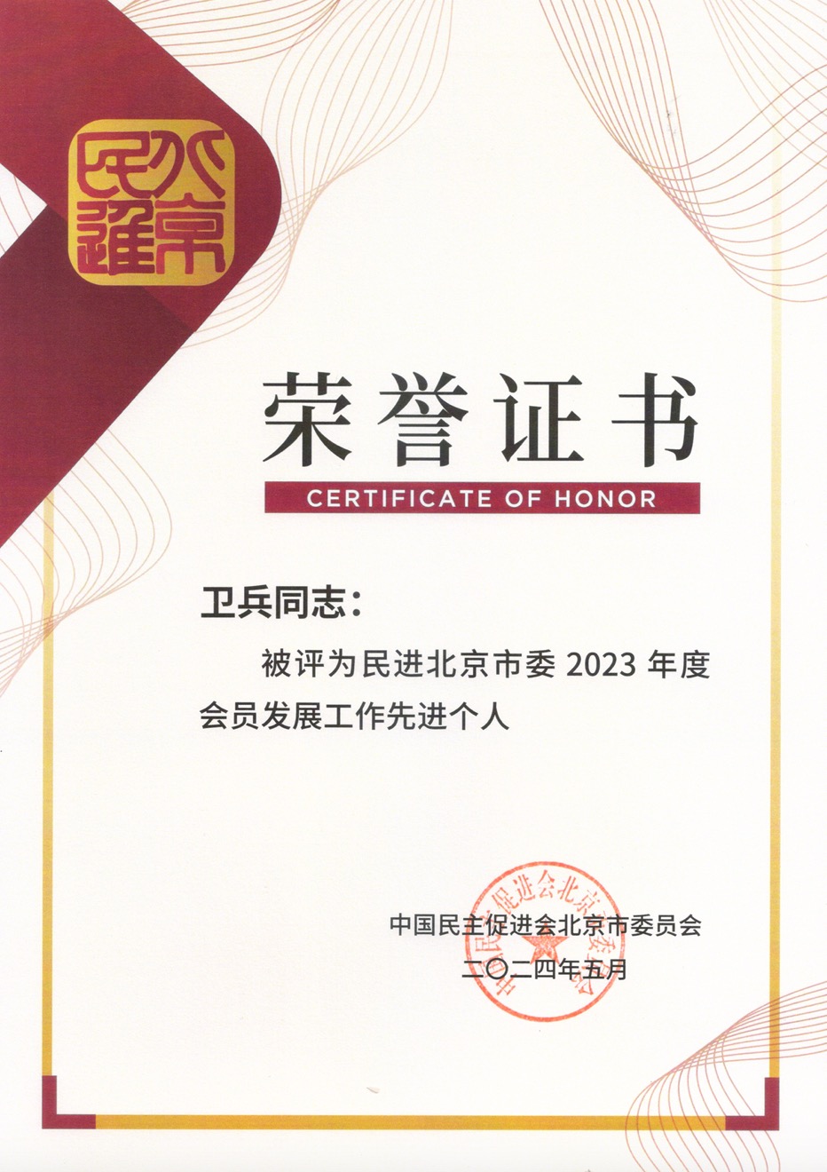 为表彰先进,树立典型,在这次会上,杨金龙还宣读了“民进北京市委关于表彰2023年度会员发展工作先进组织、先进个人的决定”。民进北京师范大学基层委员会理科支部获“民进北京市委2023年度会员发展工作先进基层组织”荣誉称号,民进北京师范大学基层委员会副主委卫兵获“民进北京市委2023年度会员发展工作先进个人”荣誉称号。
