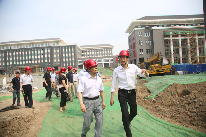 会前,董奇一行参观了G区校园各建筑单体,详细了解了建设进展和工程验收等重点、难点问题。