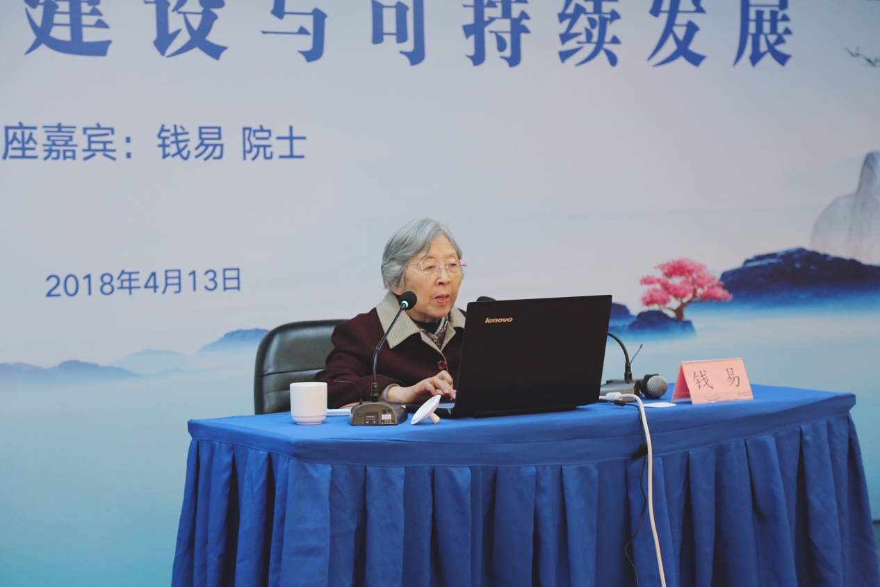 中国工程院院士、清华大学环境学教授钱易院士为来自校内外150余名师生作了题为“生态文明建设与可持续发展”的报告。钱易是中国工程院首批院士,也是清华大学首位女院士,多年来坚持传播生态文明与绿色发展,为我国的环境事业做出了卓越的贡献。