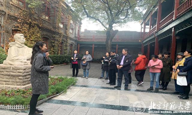 在前往辅仁校区的大巴车上,杨健为大家简要介绍了辅仁大学的校史。大家参观大礼堂、教学楼、图书馆、二烈士墓、一二九运动纪念碑、后花园等每一处大家驻足的地方,都彰显辅仁大学悠久的历史、厚重的文化积淀和辅仁前辈们爱校爱国的革命情怀。