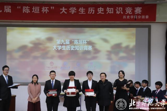 11月17日,由北京师范大学历史学院团委主办的第九届“陈垣杯”大学生历史知识竞赛落幕。来自中国人民大学、北京师范大学、首都师范大学、南开大学的四支代表队参加总决赛。经过激烈角逐,北京师范大学代表队获得一等奖。