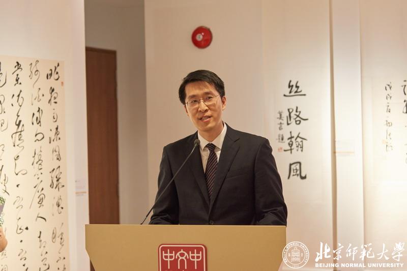 参展作者代表吴鹏博士在开幕式上发言。他表示,参展的130多幅书法作品既体现了书法博士的水平,也是对当代中国书法高等教育的一次综合型检阅,本次展览对增进中新两国文化交流,尤其是促进中新两国书法艺术文化的交流与合作将产生积极的影响。