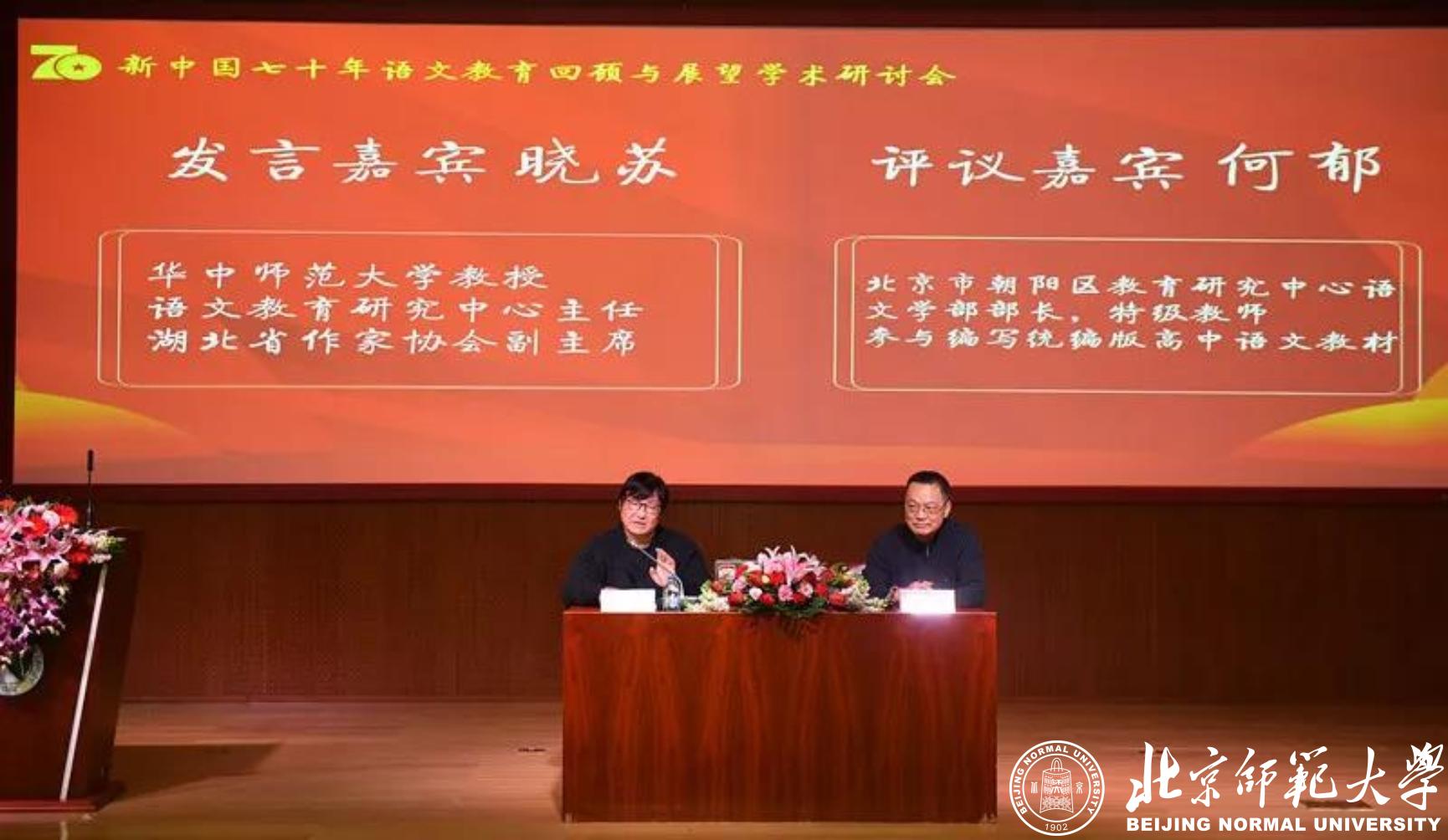 12月8日,由北京师范大学文学院语文教育研究所主办的新中国70年语文教育回顾与展望学术研讨会在京师学堂举行。来自全国各地的200余位语文学科专家、教研员和一线语文教师,以及关心语文教育的学者和媒体朋友参与研讨会。北京师范大学副校长涂清云、文学院学术委员会主任刘勇先后致辞,北京师范大学资深教授、中国学生发展核心素养研制组负责人林崇德先生作大会主题报告。会议开幕式由北京师范大学文学院党委副书记方红珊主持。