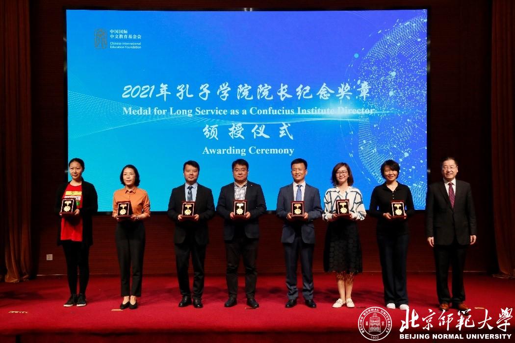 9月27日下午,主题为“致敬历史,开启未来”的“孔子学院日”活动在京举办。中国国际中文教育基金会理事长、中国科学院院士杨卫,孔子学院院长、教师、在华留学学员和中方合作机构代表等100余人出席现场活动,全球孔院成员通过线上共同参与。活动为75位在孔子学院任职超过10年的中外方院长授予“孔子学院院长纪念奖章”,孔子学院全球门户网站同日上线,还揭晓了“最·孔院”短视频征集活动百部入围作品名单。中国国际中文教育基金会副秘书长、北京师范大学副校长周作宇参加活动,并为院长纪念奖章获得者颁奖,北师大国际交流与合作处负责人参加活动。