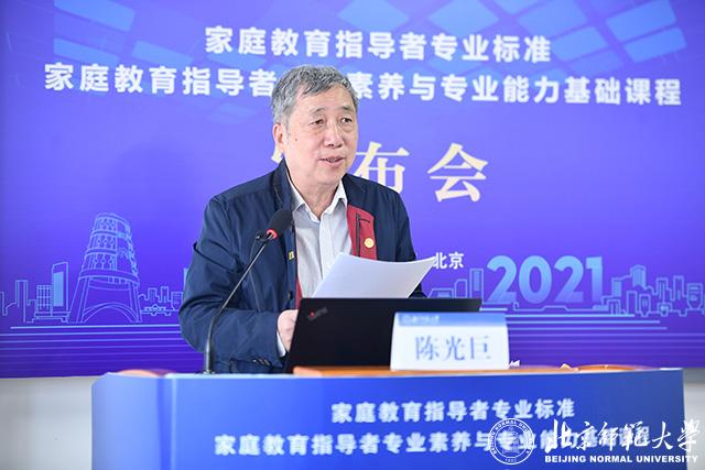 陈光巨从国家强盛、民族复兴的高度呼吁社会各界有识之士共同参与家庭教育,共同营造家、校、社共育的良好教育生态,希望本次发布的家庭教育指导者专业标准和专业能力提升基础课程,能够精准回应社会关切。