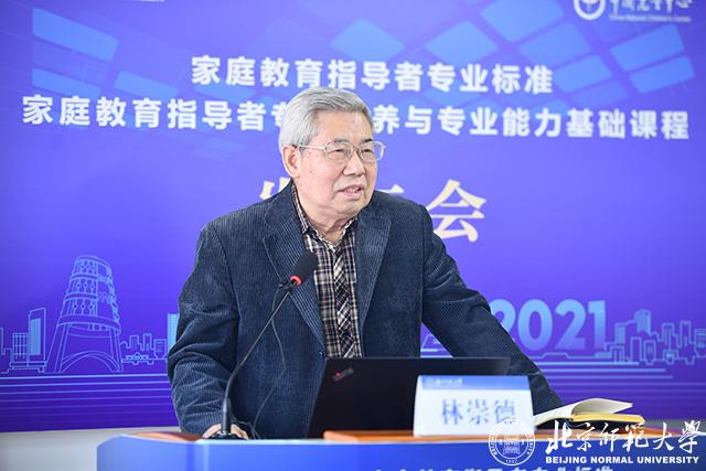 林崇德从时代需要、教育需要和现实需要的三重角度,强调了家庭教育学科体系建设的重要性,指出要以《家庭教育促进法》为法律依据,以“家、校、社协同”为途径,强调家庭教育探索要遵循“立足中国、借鉴国外”的原则,体现“人民至上、儿童至上、生命至上”,注重传承中华优秀传统文化,注重家风家规建设,打造具有中国特色、中国风格和中国气派的家庭教育指导体系。