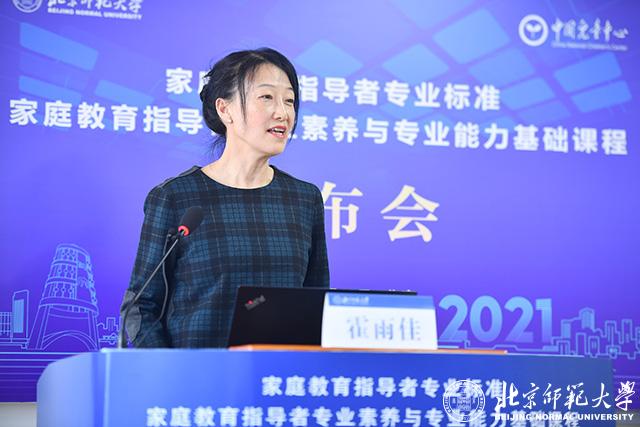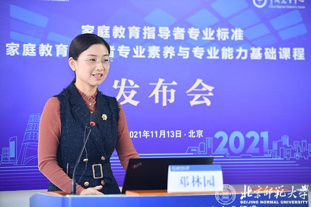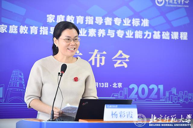 杨彩霞回顾了家庭教育指导者专业标准及家庭教育指导者专业素养和专业能力基础课程的研制历程,表示中国儿童中心与北京师范大学将共同携手,继续为家庭教育指导服务课程体系和人才队伍建设贡献力量。
