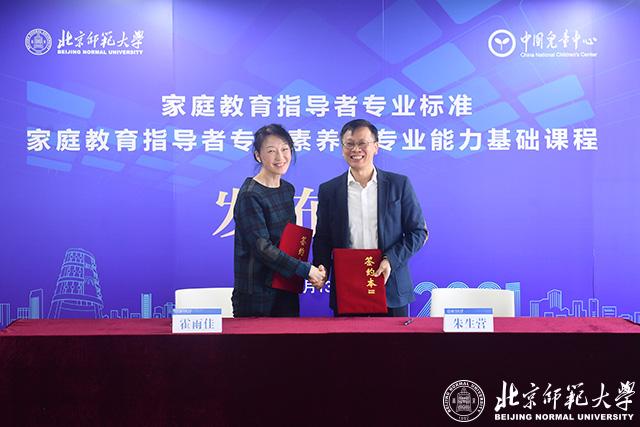 发布会由北京师范大学继续教育与教师培训学院副院长张丽主持,北京师范大学继续教育与教师培训学院院长朱生营和中国儿童中心家庭教育部部长霍雨佳代表两家单位共同签署了合作备忘录,北京师范大学和中国儿童中心联合启动了“家庭教育指导者专业素养与专业能力基础课”线上项目,为有志于从事家庭教育指导工作的各界人士提供学习机会。
