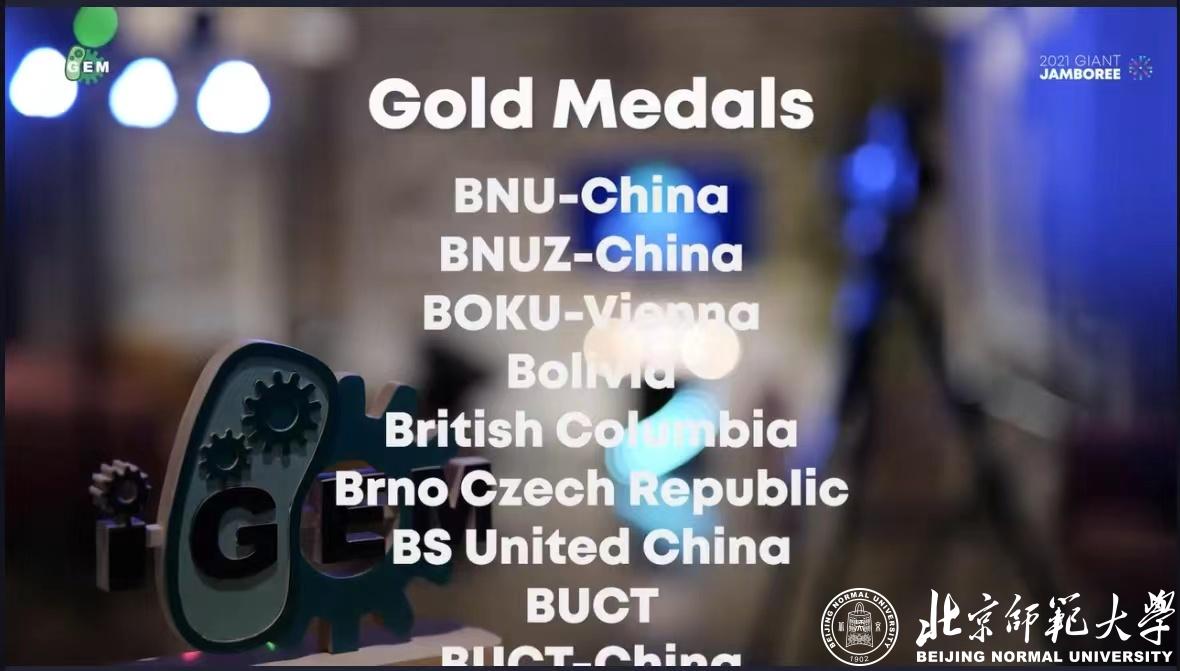 BNU-China团队在8个多月里,在生命科学学院朱旭东、杨冬、郝晓冉、陈金波、李森等多位教授专家指导下,完成文献调研、方案设计、咨询专家、载体构建、基因表达、数学建模、功能验证、建立网页、项目展示、推广教育等工作,并努力将合成生物学推广给更广泛的人群。同时,BNU-China团队通过网页和视频展示等方式,清晰完美的展现了创新工作成果,获得了大赛评委的一致好评,最终促成了今年BNU-China拿下单项奖提名并再次获得金牌的好成绩。