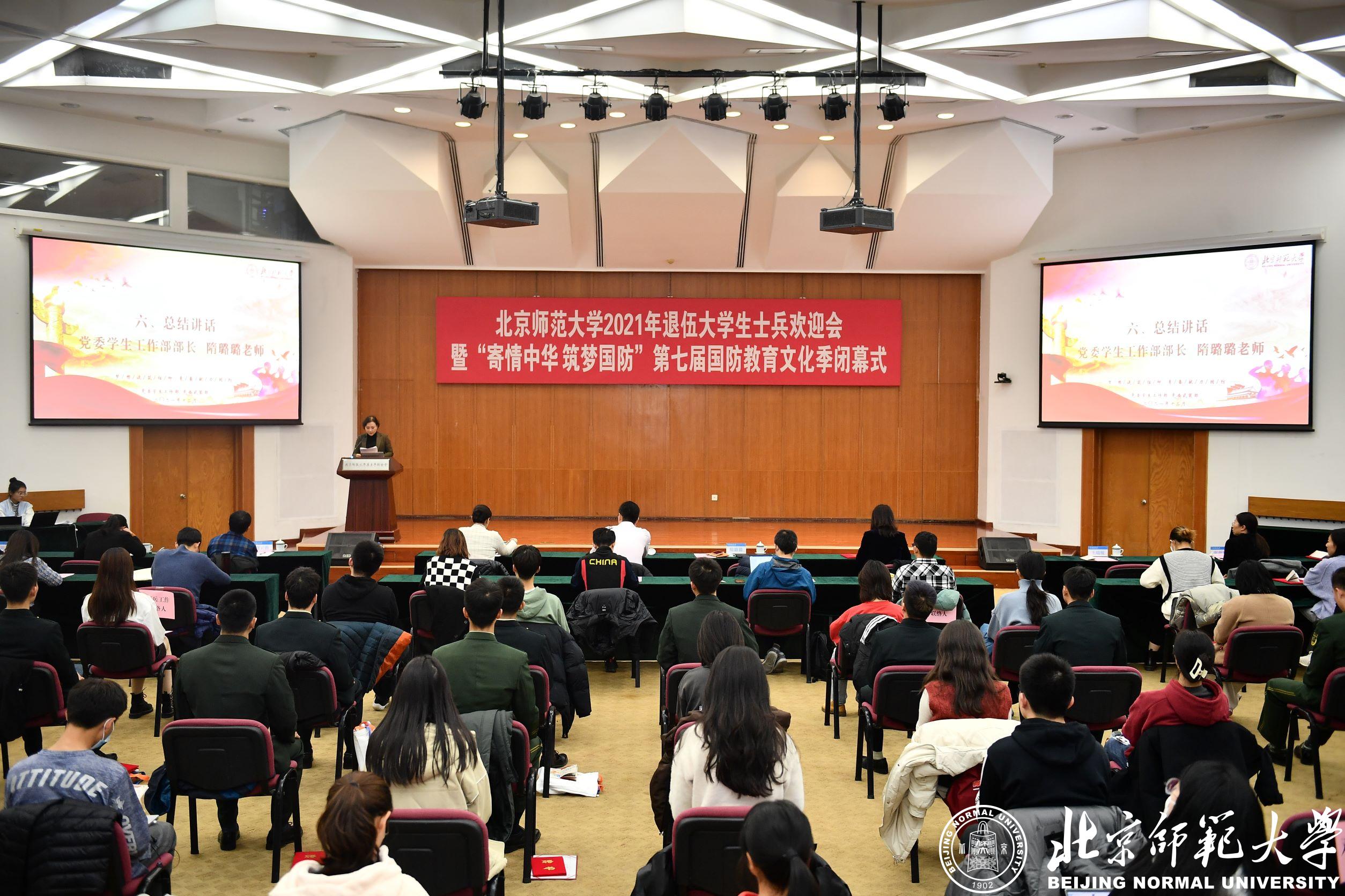 闭幕式上,党委武装部负责同志介绍了北师大2021年退伍大学生士兵和国防社团新任骨干整体情况,并对下一阶段工作提出要求。会议对2021年度征兵工作先进个人、征兵工作优秀联络人以及国防教育优秀个人进行了表彰。