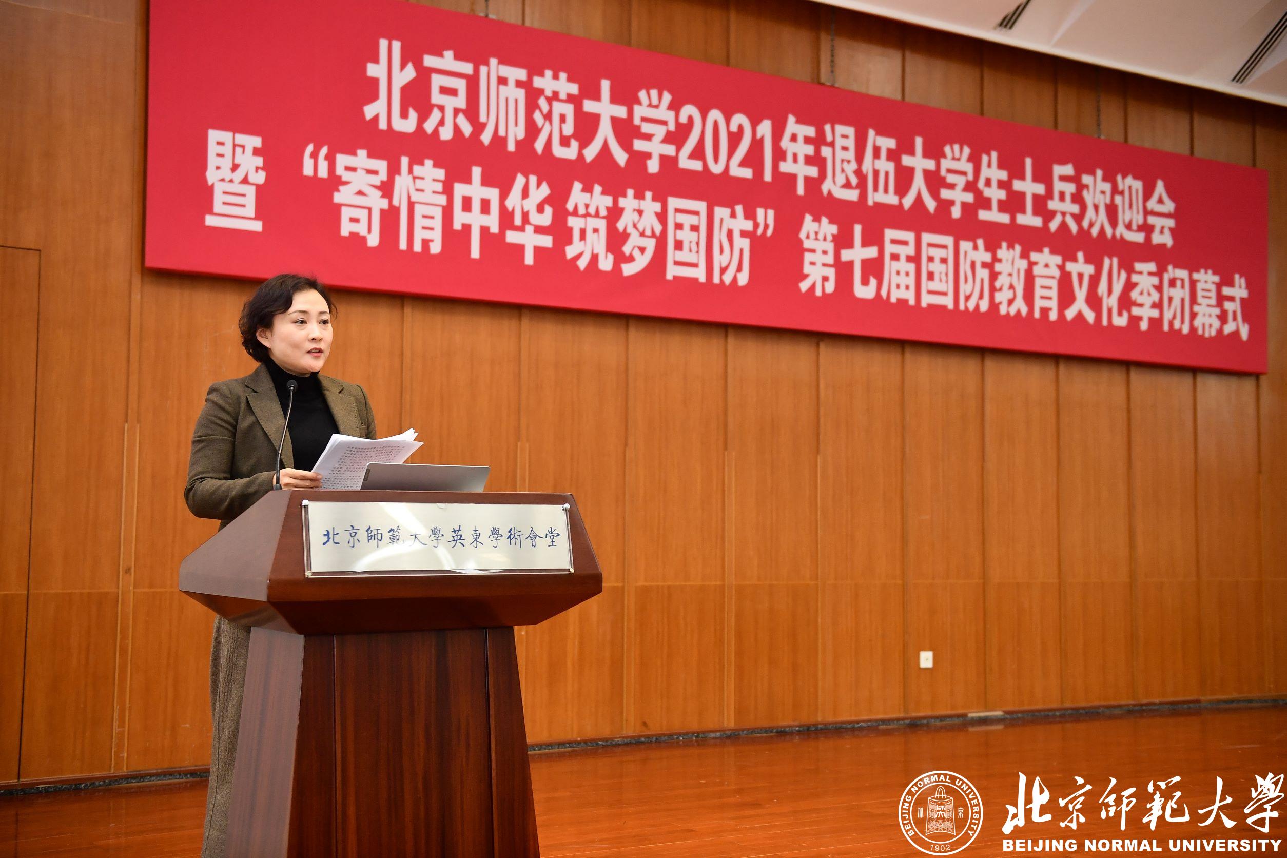 12月10日下午,北京师范大学2021年退伍大学生士兵欢迎会暨“寄情中华 筑梦国防”第七届国防教育文化季闭幕式在英东学术会堂举办。党委学生工作部、党委武装部负责同志,学部院系征兵工作负责人和联络人代表出席活动;学校国防爱好者协会、定向越野协会、女子国旗护卫者协会、退伍大学生士兵协会成员代表参与了本次活动。
