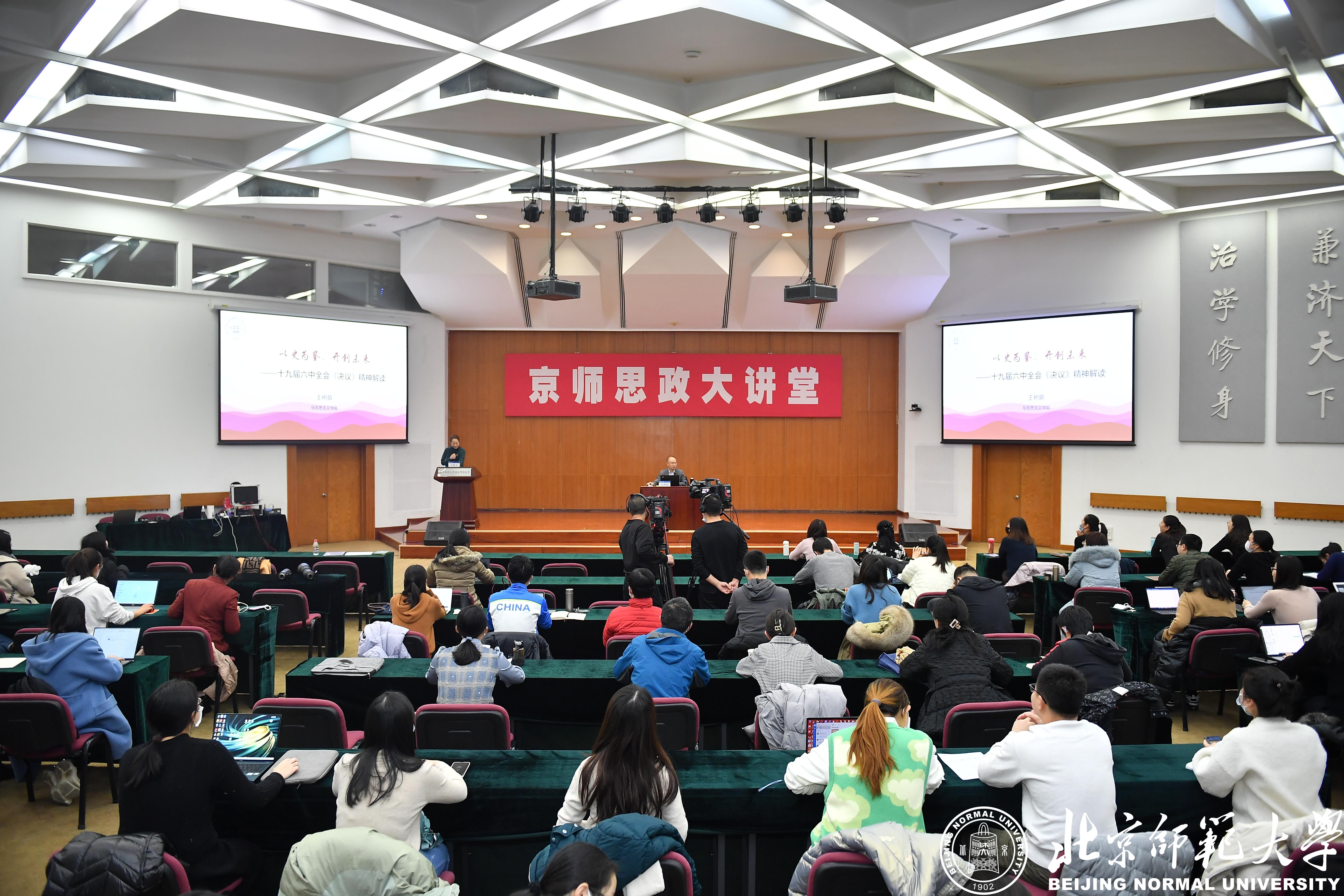 第26场“京师思政大讲堂”报告主题突出、观点鲜明、解读到位、针对性强。全会通过的《中共中央关于党的百年奋斗重大成就和历史经验的决议》,全面回顾了党走过的百年奋斗历程,系统总结了党的重大成就和历史经验,着重阐释了十八大以来党和国家事业取得的历史性成就、发生的历史性变革,突出强调“两个确立”的决定性意义,对实现第二个百年奋斗目标提出明确要求。我们要把深入学习贯彻党的十九届六中全会精神,把党对师生的殷切期望转化为实际行动,为培养堪当民族复兴大任的时代新人持续贡献北化力量。