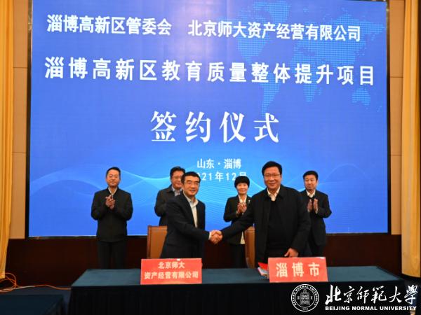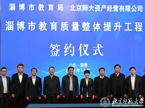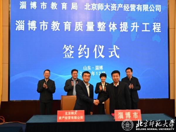 12月24日,北京师大资产经营有限公司与淄博市教育局签署“淄博市教育质量整体提升工程”战略合作协议。学校党委常委、副校长王守军,淄博市政府副市长毕红卫出席签约仪式并致辞;资产经营公司党委书记、董事长张强等参加签约仪式。淄博市委教育工委常务副书记、市教育局党组书记、局长孙英涛与资产经营公司专职副总裁王均代表双方签订战略合作协议。