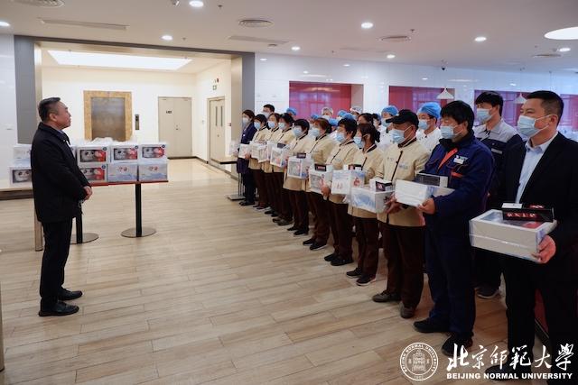 李晓兵向我校奉献冬奥的一线员工转达市教育工会的慰问,并代表学校工会发放冬奥慰问品。