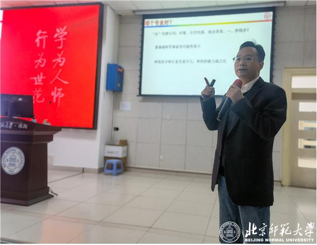 北京师范大学文理学院化学系主任刘亚军教授在宣讲动员大会做报告