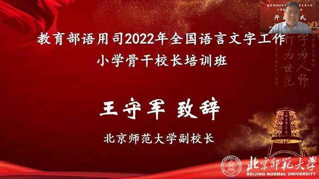 为贯彻落实全国语言文字工作会议精神和《国务院办公厅关于全面加强新时代语言文字工作的意见》,推动语言文字事业高质量发展,近日,由教育部语言文字应用管理司主办、北京师范大学继续教育与教师培训学院承办的2022年全国语言文字工作中学骨干校长、小学骨干校长和幼儿园骨干园长培训项目先后在线上开班,教育部语言文字应用管理司二级巡视员孟庆瑜、北京师范大学副校长王守军出席相关开班仪式,来自全国31个省、自治区、直辖市和新疆生产建设兵团的140名小学骨干校长、130名中学骨干校长和100名幼儿园骨干园长参加了相关培训。