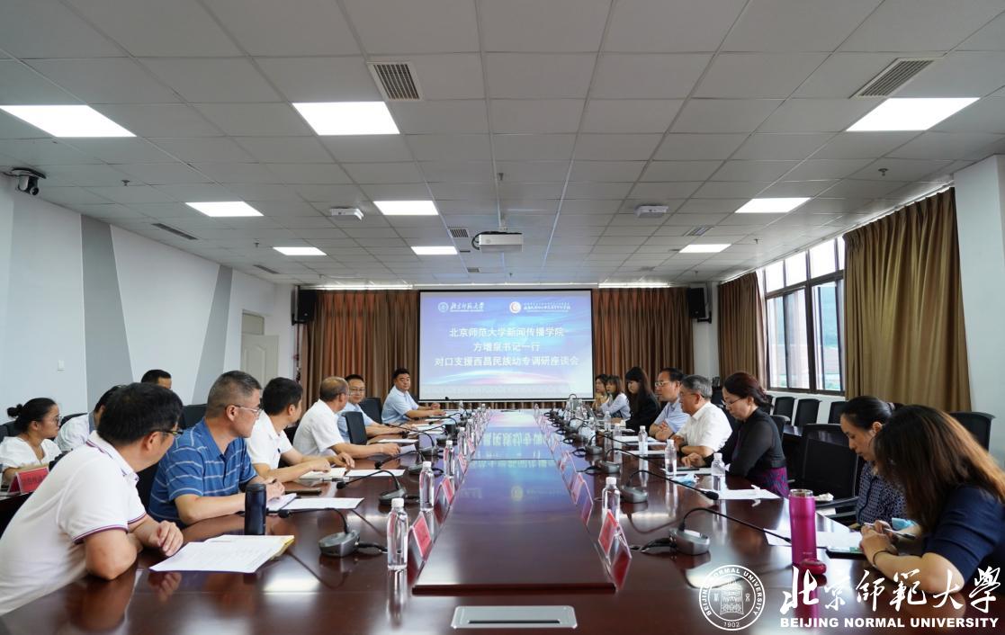 师生一行先后走访了北京师范大学新闻传播学院对口援建西昌幼专的智慧未来教室,共建VR工作站、图书馆捐赠书籍相关情况,实地了解了VR技术在虚拟仿真教学、信息科技教学中发挥的作用。与西昌民族幼儿师范高等专科学校校长赵波、副校长成国志一行进行了座谈,深入了解西昌幼专在幼专融媒体建设、学校新媒体专业人才培养、信息技术类专业人才培养的相关需求。新闻传播学院党委书记方增泉、院长张洪忠对西昌幼专学科专业建设及人才培养提出了针对性建议。