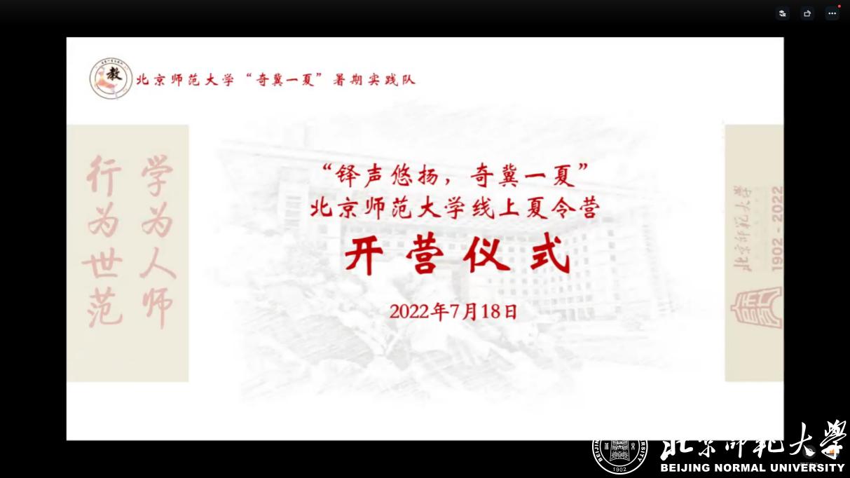 “铎声悠扬,奇冀一夏”北京师范大学线上夏令营开营仪式