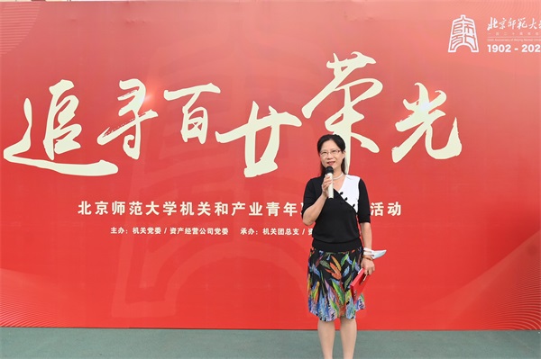 木铎金声,弦歌不辍;巍巍师大,历久弥新。为追寻和传承北师大精神,加强学校机关和产业青年职工的交流融合,展现青年职工爱岗爱校、争先创优的精神风貌,9月28日,“追寻百廿荣光”青年职工共建活动于海淀校园举办。本次活动由机关党委、资产经营有限公司党委联合主办,机关团总支、资产经营有限公司团委承办。机关党委常务副书记李美仙,120周年校庆工作办公室主任范立双,校工会副主席王远,资产经营有限公司党委书记、董事长张强,党委副书记、总裁刘韫刚,党委副书记、工会主席张晓辉等出席活动。机关和产业60余名青年职工参加本次活动。