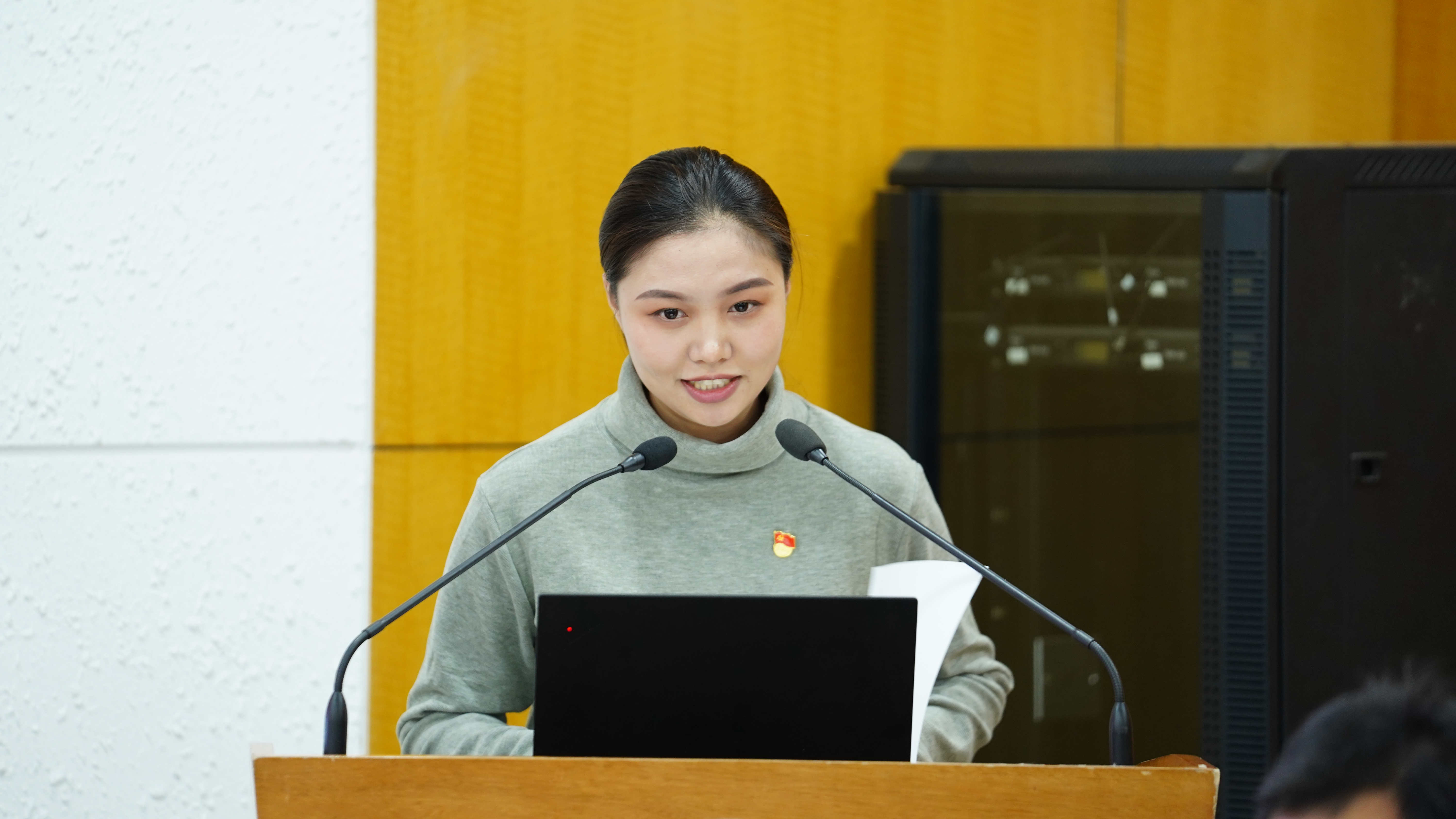 教工第二党支部书记、美术与设计系李嫣详细汇报了支部在理论学习、党建工作和学科发展方面的情况。她表示,教工党支部将继续在上级党委的带领下,充分发挥基层组织作用,坚持培根铸魂育人理念,把立德树人内化到艺术专业的教学中;推进艺术学科建设与发展,打造品牌活动,增强学术引领力和影响力;发挥专业特长,提升党员的担当意识和社会服务力。