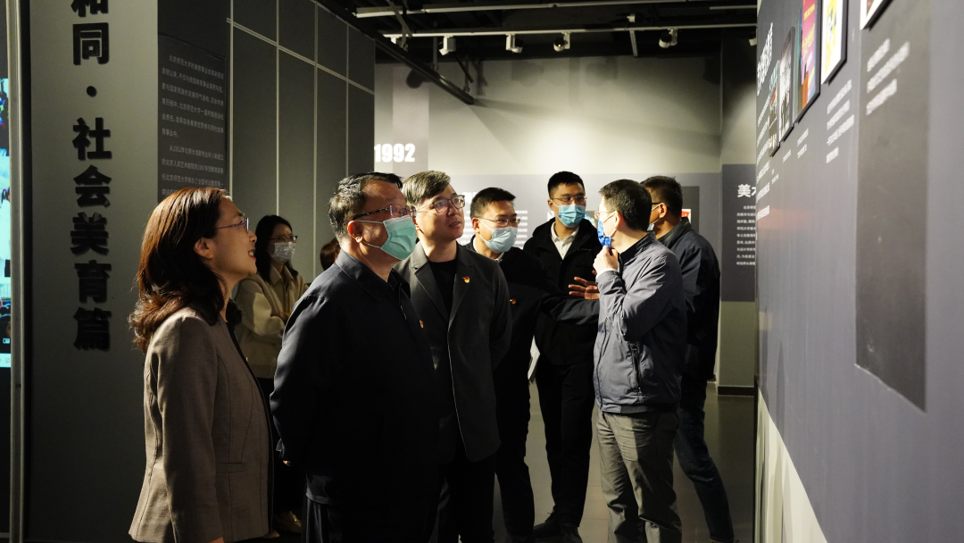 会前,程建平一行参观了京师美术馆、学院四层大厅、综合办公室、数字媒体教室、美术教室等多个地点,细致了解了学院现行空间概况。