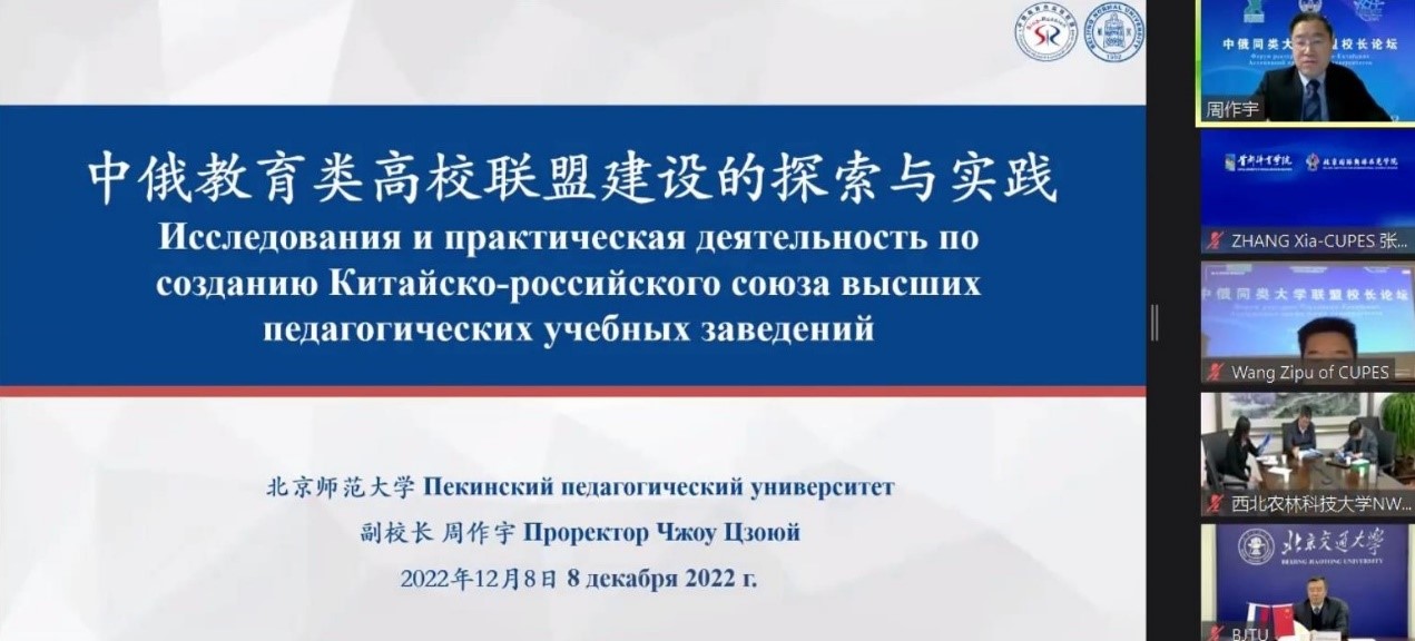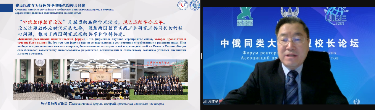 12月8日,由中俄两国教育部主办,对外经济贸易大学与莫斯科国立大学、圣彼得堡国立经济大学、教育部中外人文交流中心联合承办的“中俄同类大学联盟校长论坛”在线上举行。北京师范大学副校长周作宇应邀参会并作主旨发言。