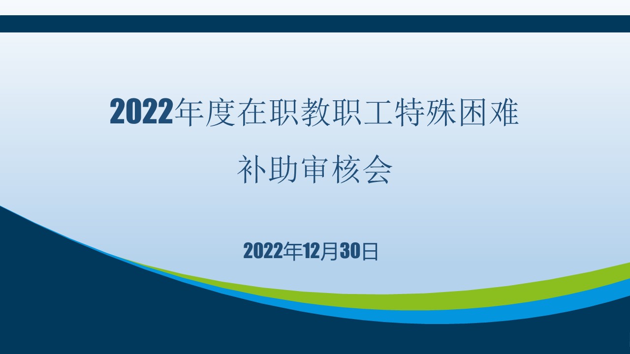 2022年12月30日,校工会召开2022年度在职教职工特殊困难补助审核会,对申报教职工情况进行审核。 党委/校长办公室、党委教师工作部、人才人事处、财经处、校医院等单位相关负责人和校工会常务委员会、教代会经费审查委员会和教代会生活福利工作委员会等委员代表作为审核小组成员参加会议。会议采用线上线下相结合的形式召开。会议由校工会负责人主持。