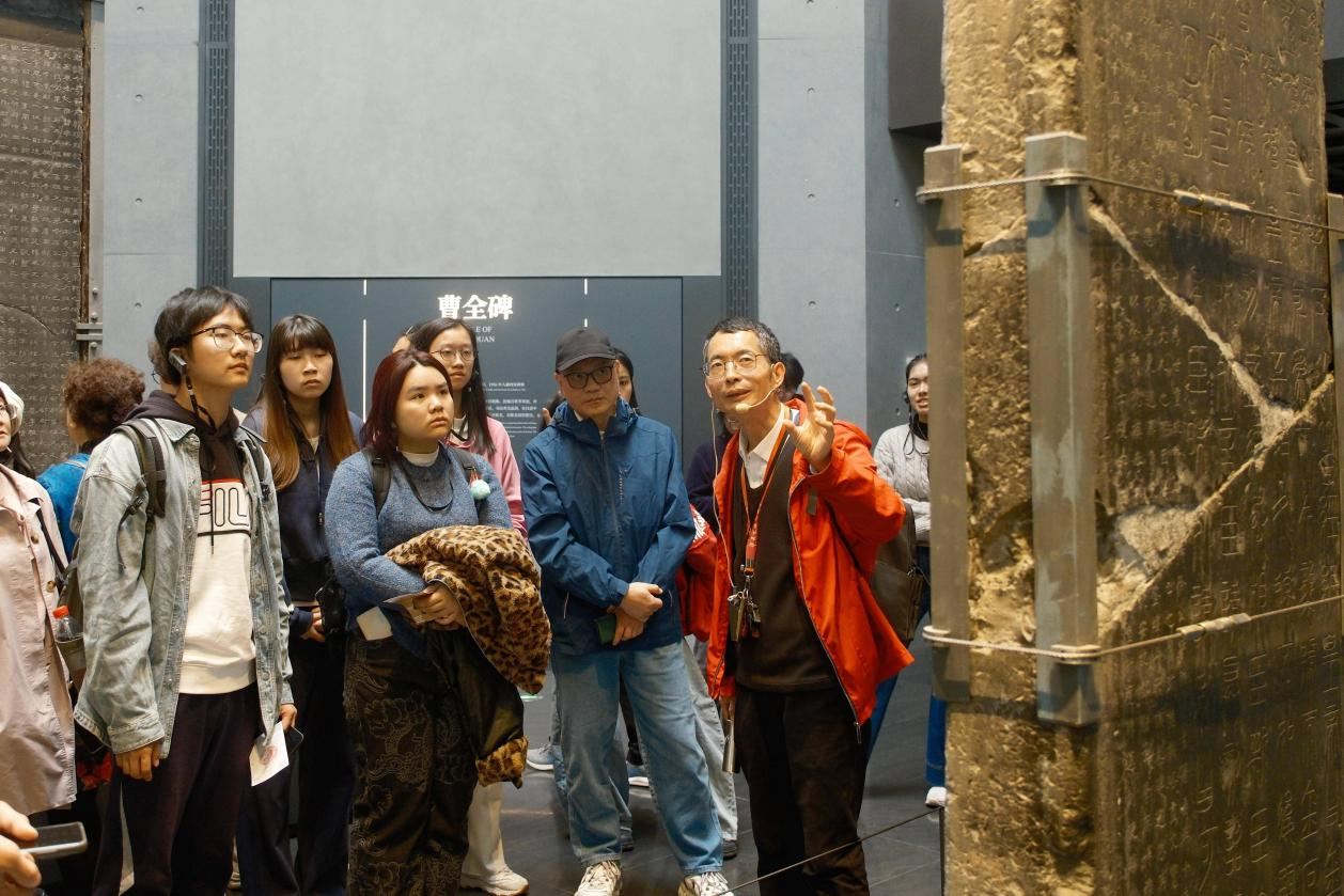 10月30日,团队来到陕西历史博物馆。陕西历史博物馆以周秦汉唐时期文物为核心,展现中华文化从远古到唐宋的发展历程。通过实地学习,港澳台学生对周秦汉唐时期历史脉络有了整体的了解、增强了中华文化自信。当天下午,团队还前往碑林博物馆进行专题学习,直观感受中国书法艺术与历史文献的传承脉络。台湾交换生刘豫文感慨道:“这些碑刻矗立天地间见证四时不停变换,至今仍能屹立于众人的视线中,让我等跨越时空能与千年前的书法家对话,何其浪漫!”