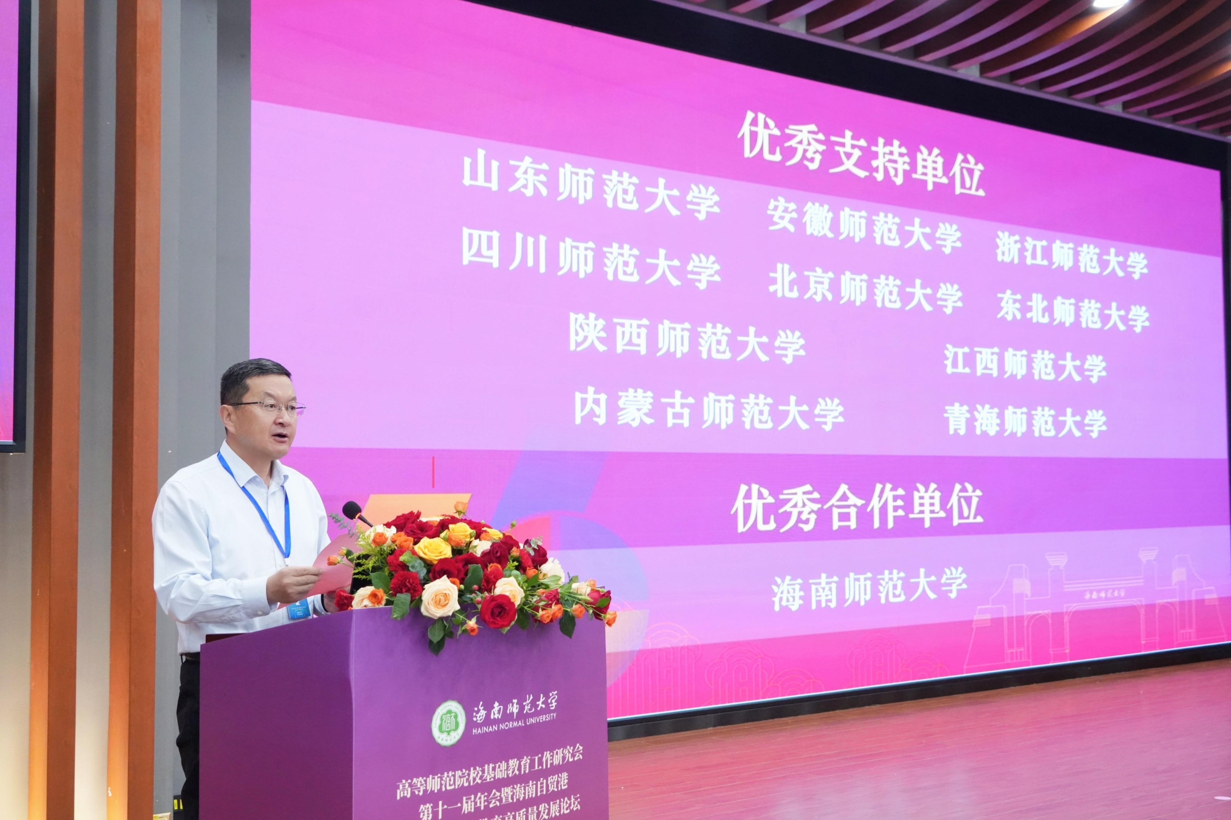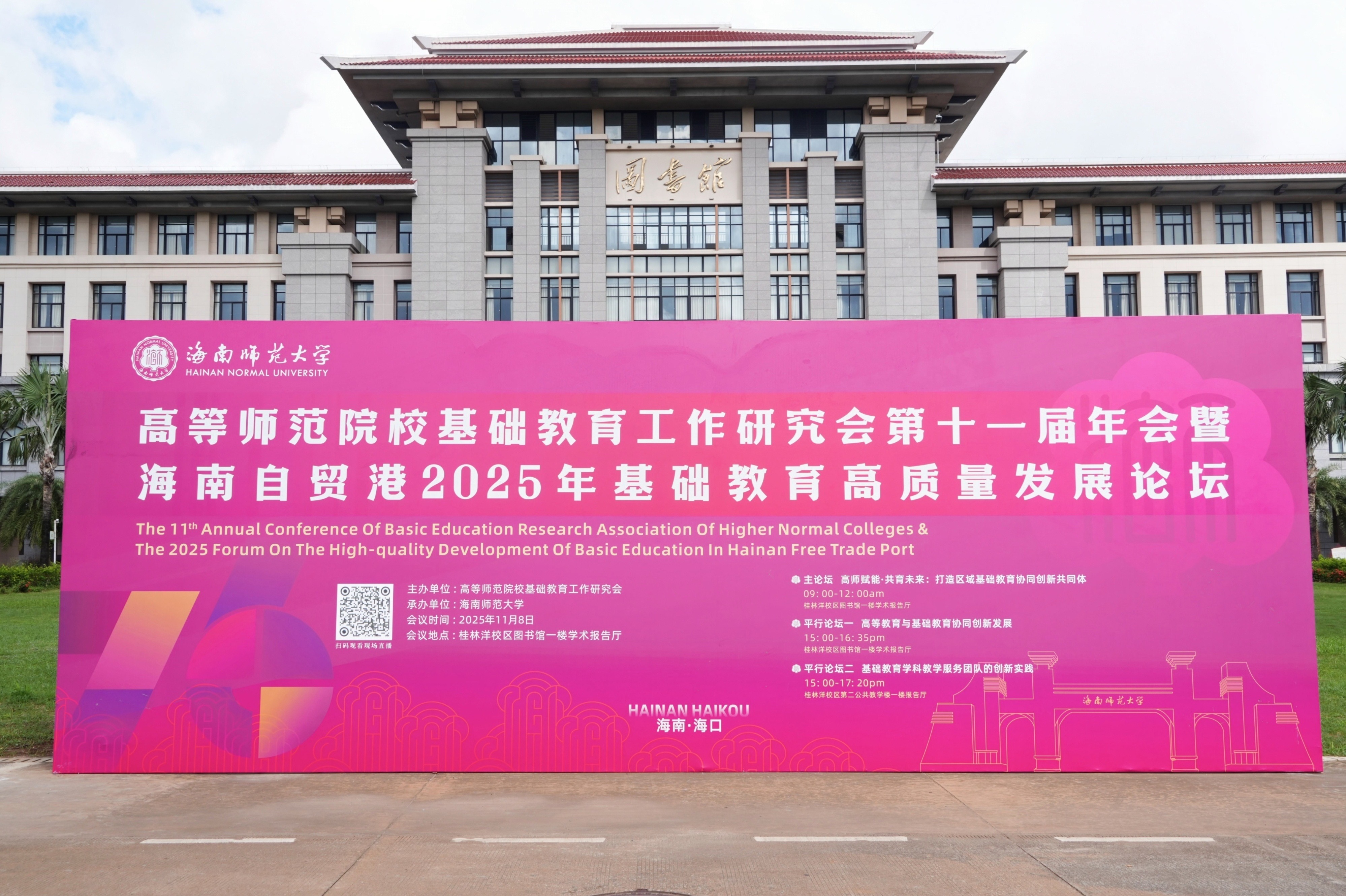 11月8日,为深入学习贯彻党的二十届四中全会“统筹教育强国、科技强国、人才强国”战略部署和习近平总书记关于教育的重要论述,推动高等教育与基础教育协同创新、双向赋能,以高质量教育体系支撑海南自贸港与国家教育强国建设,高等师范院校基础教育工作研究会第十一届年会暨海南自贸港2025年基础教育高质量发展论坛在海南师范大学桂林洋校区举办。本届年会的主题是“高师赋能·共育未来:打造区域基础教育协同创新共同体”。