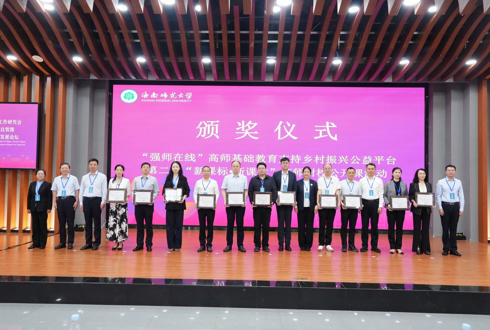 开幕式举行了“强师在线”高师基础教育支持乡村振兴公益平台第二届“新课标·新课堂”高师附校公开课活动颁奖仪式。本届活动于2024年11月启动,76所高师基础教育学校参与,50名一线教育专家参与审核点评,直播优质课例484节。山东师范大学、安徽师范大学等10所院校获评“优秀支持单位”,海南师范大学被授予“优秀合作单位”。