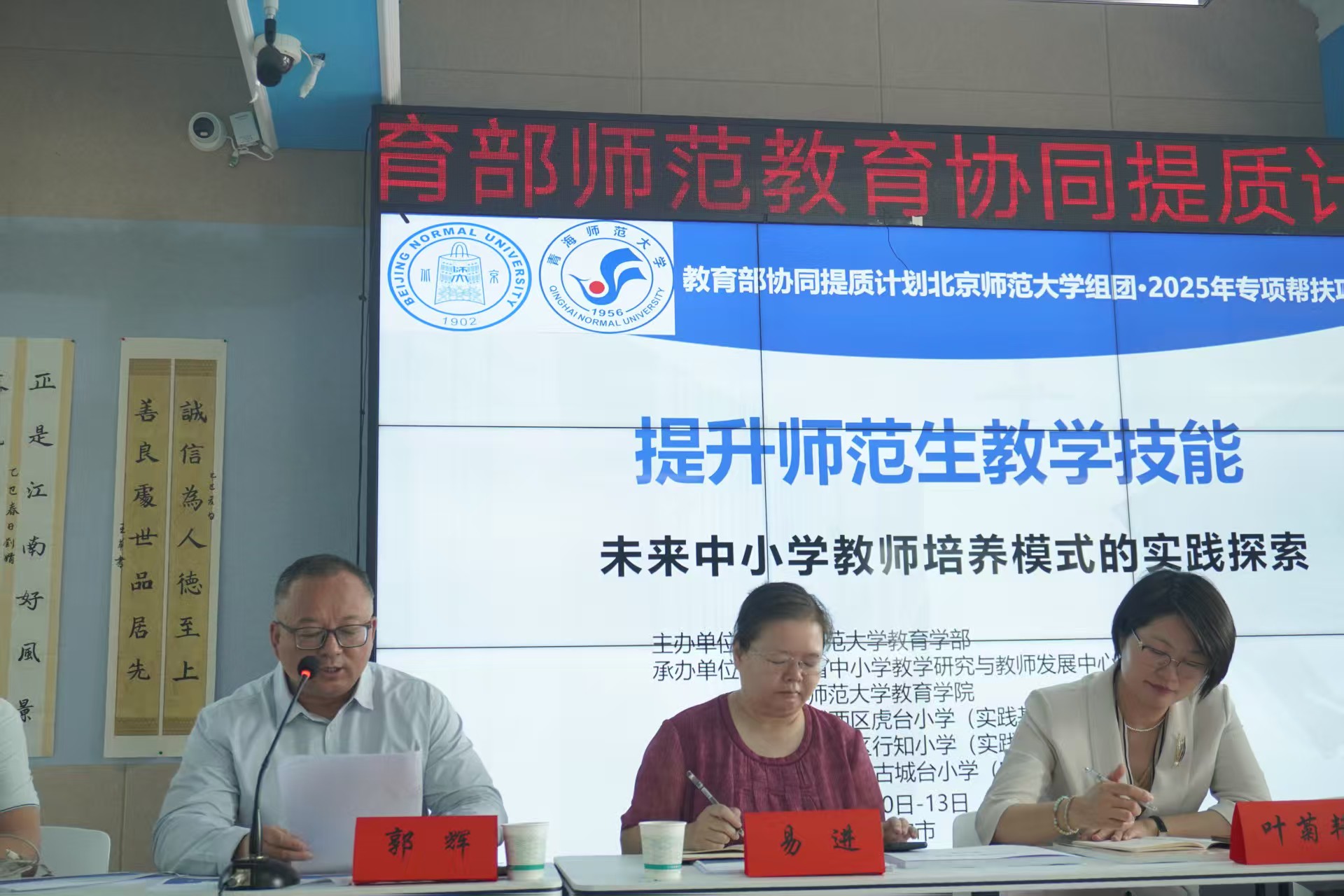 7月10日,由北京师范大学强师工程办公室统筹、教育学部承办的师范生协同培养项目在青海师范大学启动。青海师范大学教育学院书记郭辉、青海省教育研究与教师发展中心老师雷延金、西宁市城西区古城台小学校长马伟帮、虎台小学副校长邵君等基础教育专家,青海省小学教师代表、青海师范大学小学教育专业本科生及硕士生共同参加了此次活动。北京师范大学教育学部副教授易进、叶菊艳,兰州城市学院教育学院教授张艳平等专家学者出席了启动仪式。