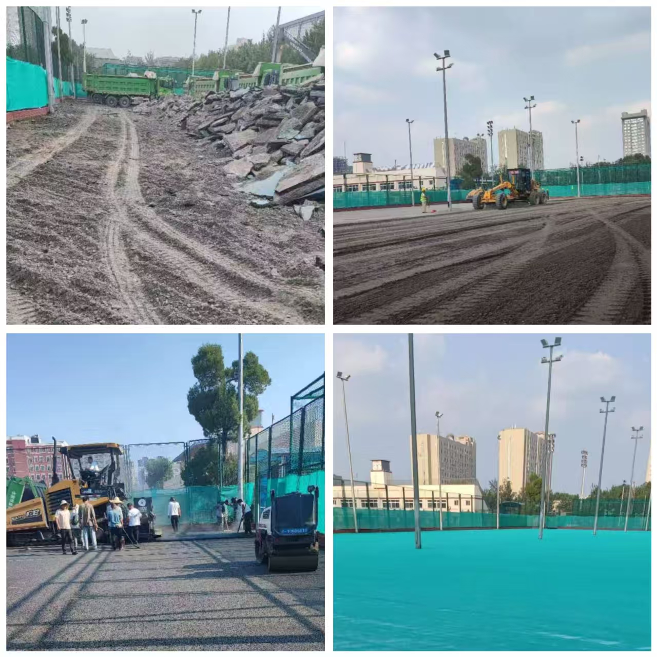 在场地改造方面,清除老旧、破损的场地基础结构,为后续新基础施工奠定平整、稳定的基底;使用沥青混凝土基础面层,形成强度高、平整度好的基层结构,提升场地的承载能力与抗碾压性能,延长场地整体使用寿命。新做场地南侧排水沟,能快速疏导场地雨水、积水,避免因积水影响活动安全与使用效率。