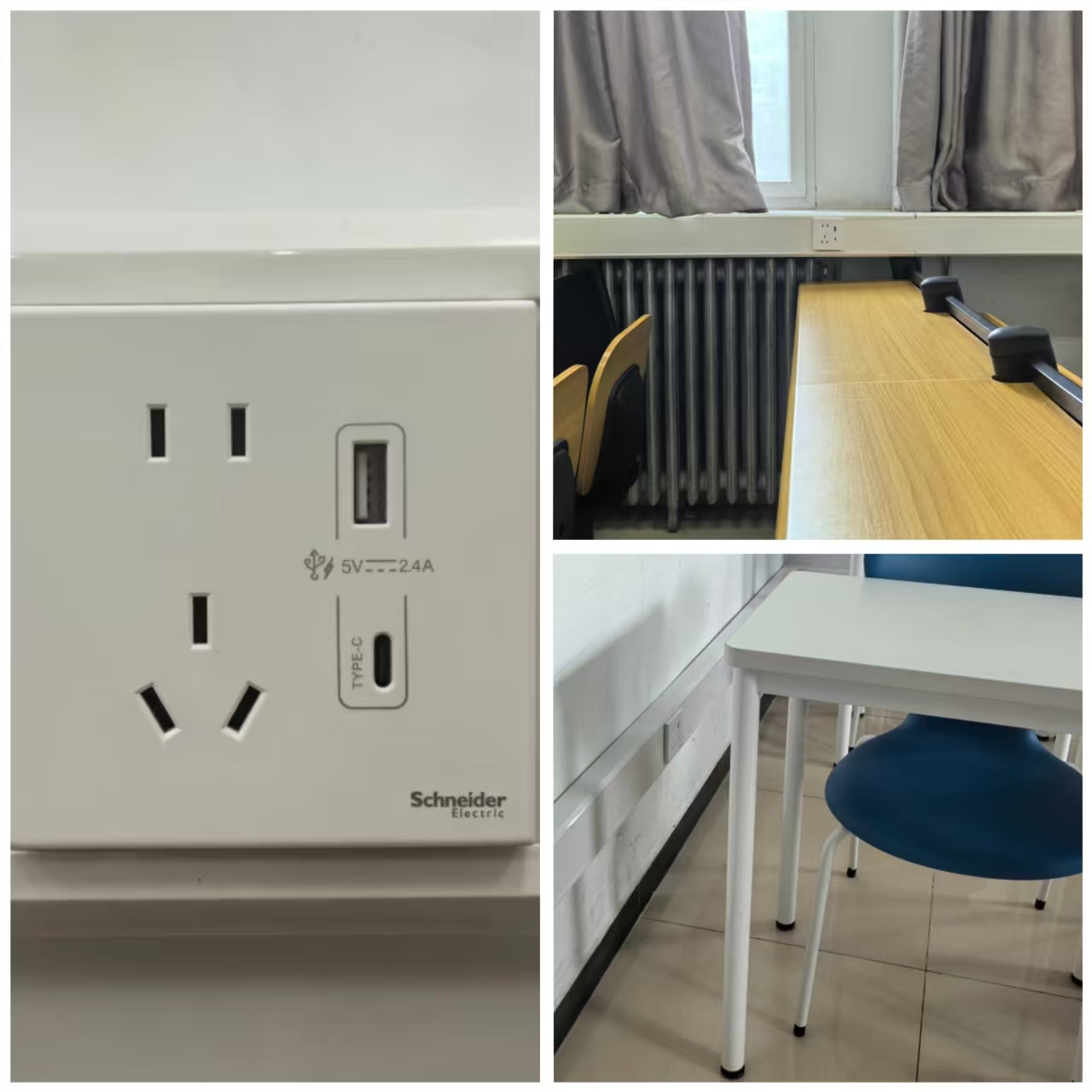 在改造过程中,总务部始终将“安全第一、实用优先” 作为核心原则。一方面,选用符合国家标准的品牌插座与电线,确保设备质量安全;另一方面,结合当前电子产品数据线类型,匹配主流充电类型接口,在保留原五孔基础上,增加USB-A、USB-C接口,以适应当前各类常见设备。