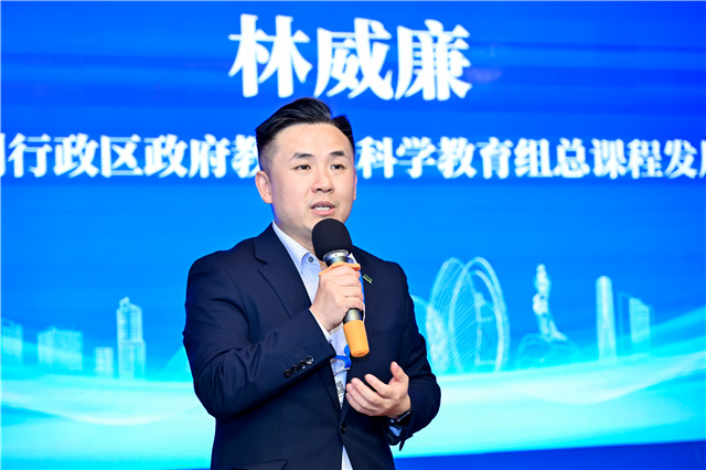 香港特区政府教育局科学教育组总课程发展主任林威廉,在以《全人视域下的科学教育“加法”实践》为题的报告中,结合丰富的案例,介绍了香港小初九年一贯科学课程的实施情况,探讨了科学教育“加法”实践的推进路径,为各地科学教育改革与科技融合教学提供了切实可行的思路。