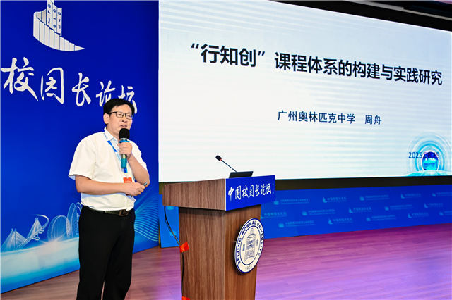 广州奥林匹克中学副校长周舟,以《“行知创”课程体系的构建与实践研究》为题,从“行知创”课程体系的初衷、构建、实践、成果四个维度展开分享。他详细介绍了该课程体系“纵向贯通小初高,横向联动多学科”的特点,分享了学校在思维课堂、课程资源与评价等方面的创新举措。