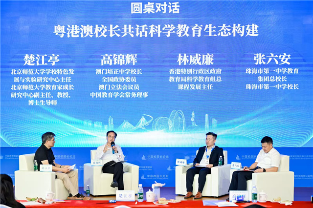圆桌对话环节聚焦“粤港澳大湾区科学教育的生态构建”核心议题。高锦辉、林威廉、张六安等主旨报告嘉宾参与讨论,论坛由楚江亭主持。三位嘉宾从各地的教育现状和特色出发,围绕粤港澳大湾区科学教育资源互通、特色共建等议题展开讨论,进一步探索区域协同育人的创新模式和实践路径。