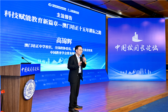 澳门培正中学校长、全国政协委员、澳门特区立法会议员、中国教育学会常务理事高锦辉,以《科技赋能教育新篇章——澳门培正十五年耕耘之路》为题,分享了澳门培正中学在科技教育领域的长期实践成果,展现了教育科技人才培养路径,为其他学校开展科技赋能教育提供了有益借鉴。