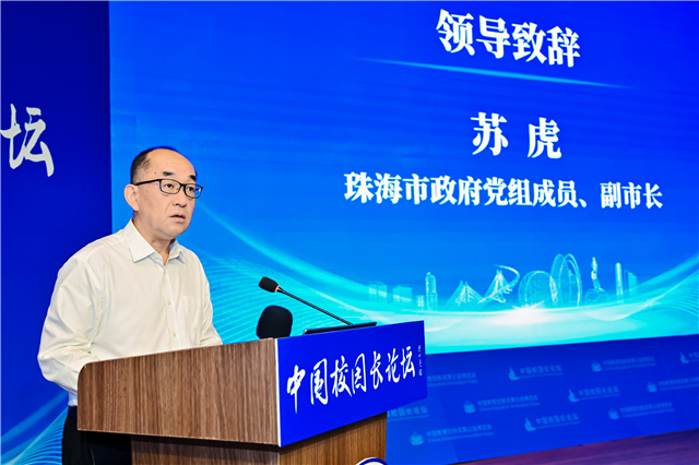 珠海市副市长苏虎出席论坛并致辞。苏虎在致辞中提到,珠海市委、市政府始终履行“办好人民满意的教育”的神圣使命,坚持教育优先发展,持续加大教育投入力度,深化教育领域综合改革,加快推进教育现代化,推动教育综合实力不断跃升。苏虎指出,中国校园长论坛是教育界的重要盛会,通过每期深度聚焦新时代教育改革发展的焦点、难点议题,不仅搭建了国内教育同仁高端研修平台,更创新构建了优秀教育经验的辐射机制,让卓越校园长的治校智慧、骨干教师的育人实践得以跨区域、跨学段传播,实现优质教育经验的“裂变式传递”,有力推动了教师队伍的专业化协同发展。