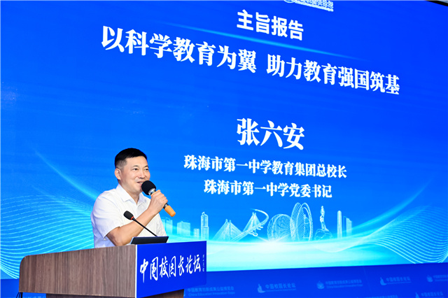 珠海市第一中学教育集团总校长、珠海市第一中学党委书记张六安,以《以科学教育为翼 助力教育强国筑基》为题,结合办学经验,介绍了珠海一中科学教育的核心思路、实施路径和实践成效,并表示将继续深化教育教学改革,探索教育数字化、智能化背景下的科学教育新路径。