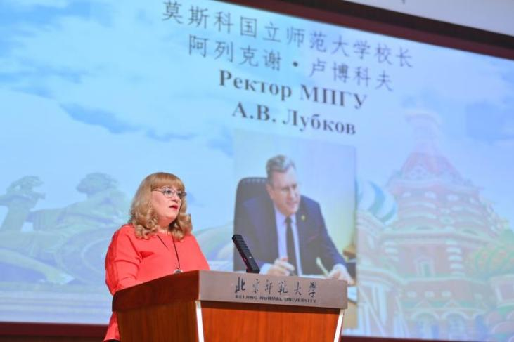 莫斯科国立师范大学语文学院副院长玛丽娜·萨拉帕斯女士代为宣读校长阿列克谢·卢博科夫的书面致辞