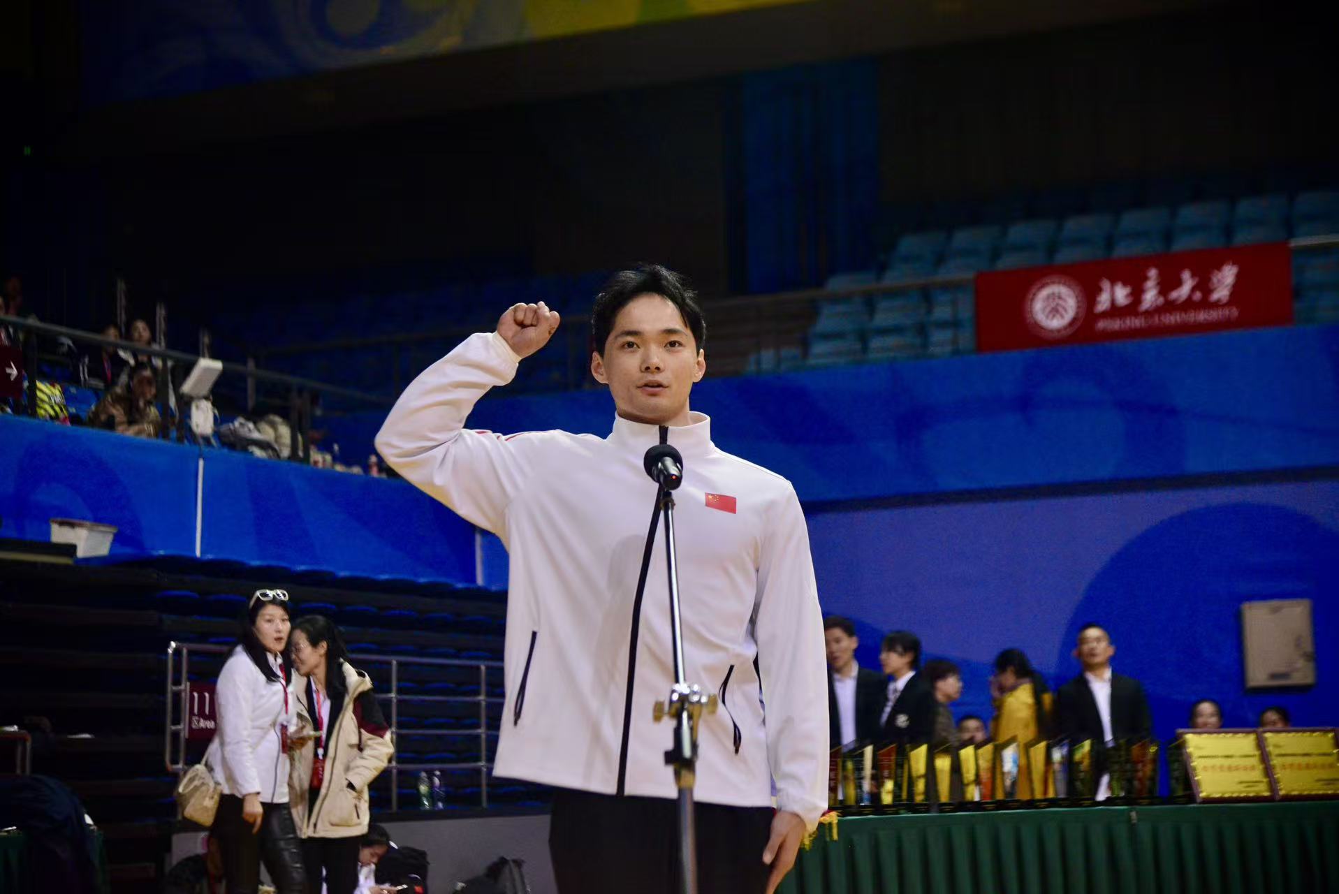 其中,北京师范大学健美操队世界冠军李立浩作为代表,进行运动员宣誓。
