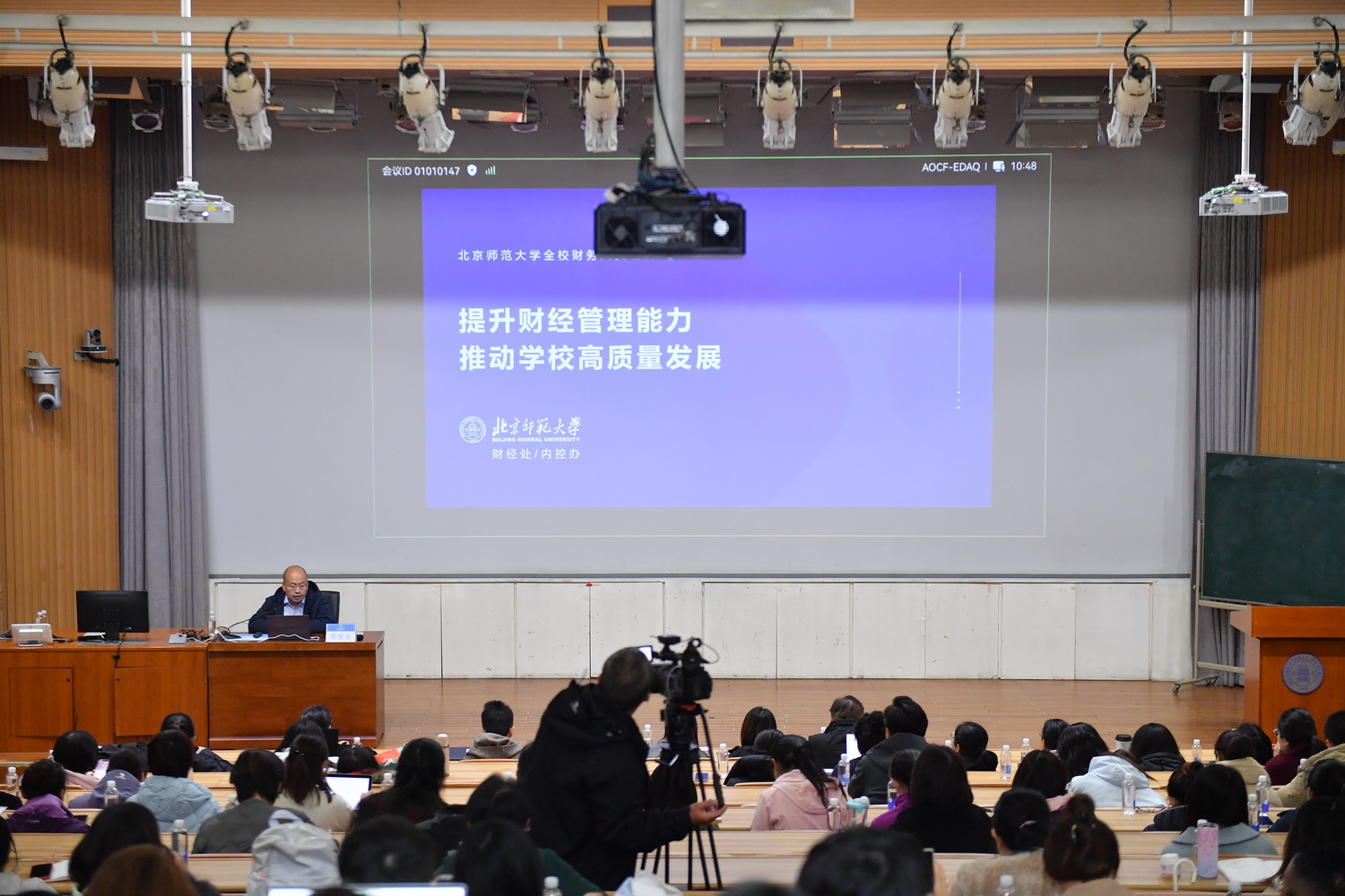 为严肃财经纪律,加强内部控制建设,提升财经管理的科学化与规范化水平,增强财务人员专业能力和服务效能,11月7日,北京师范大学财经处/内控办举办2025年全校财务人员培训会。来自全校各二级单位、附属单位、珠海校区各单位的财务负责人、预算负责人、预算员、财务人员、科研财务助理共500余人分别在北京校区主会场和珠海校区分会场参加培训。会议由财经处处长/内控办主任蔡宏波主持。