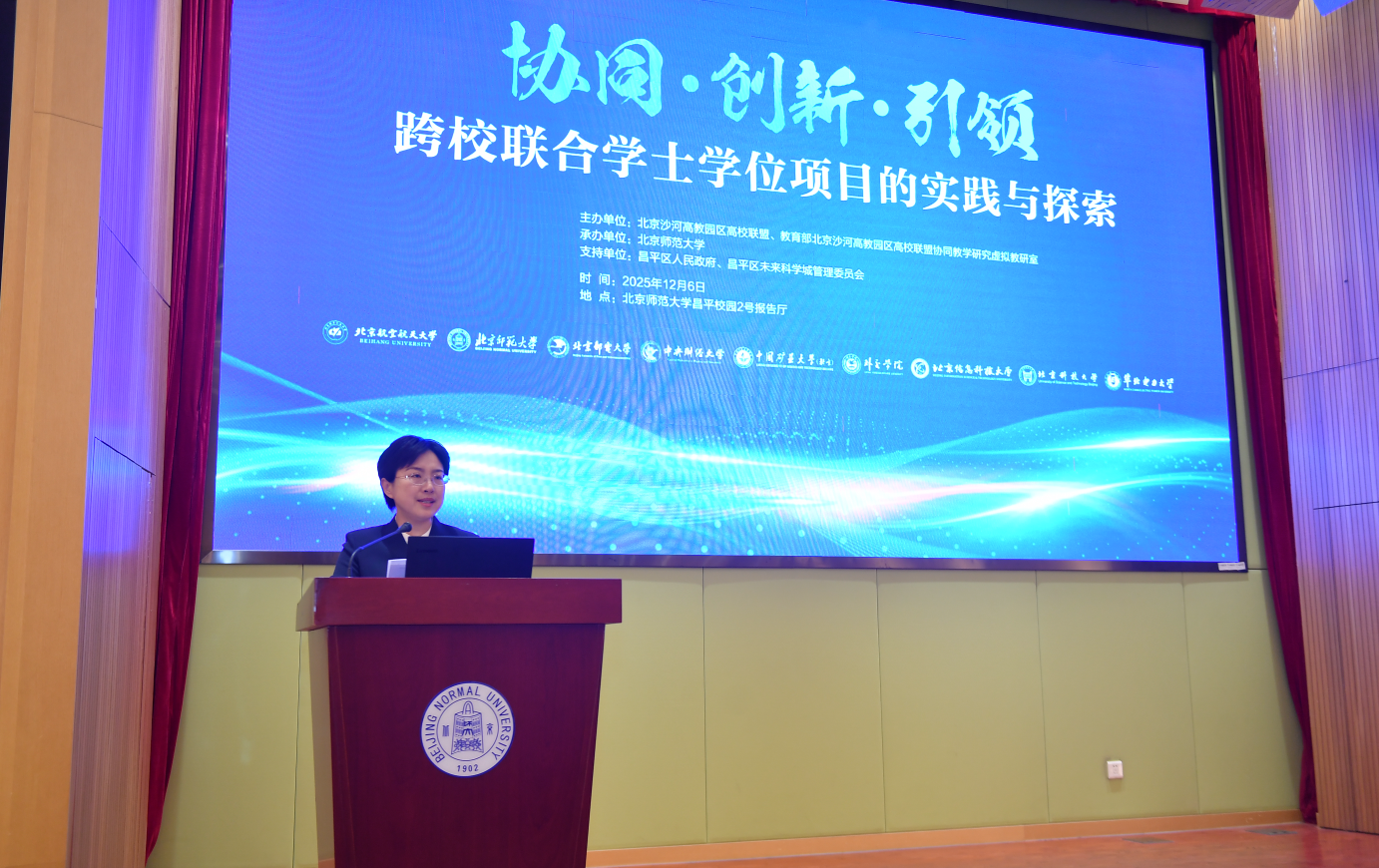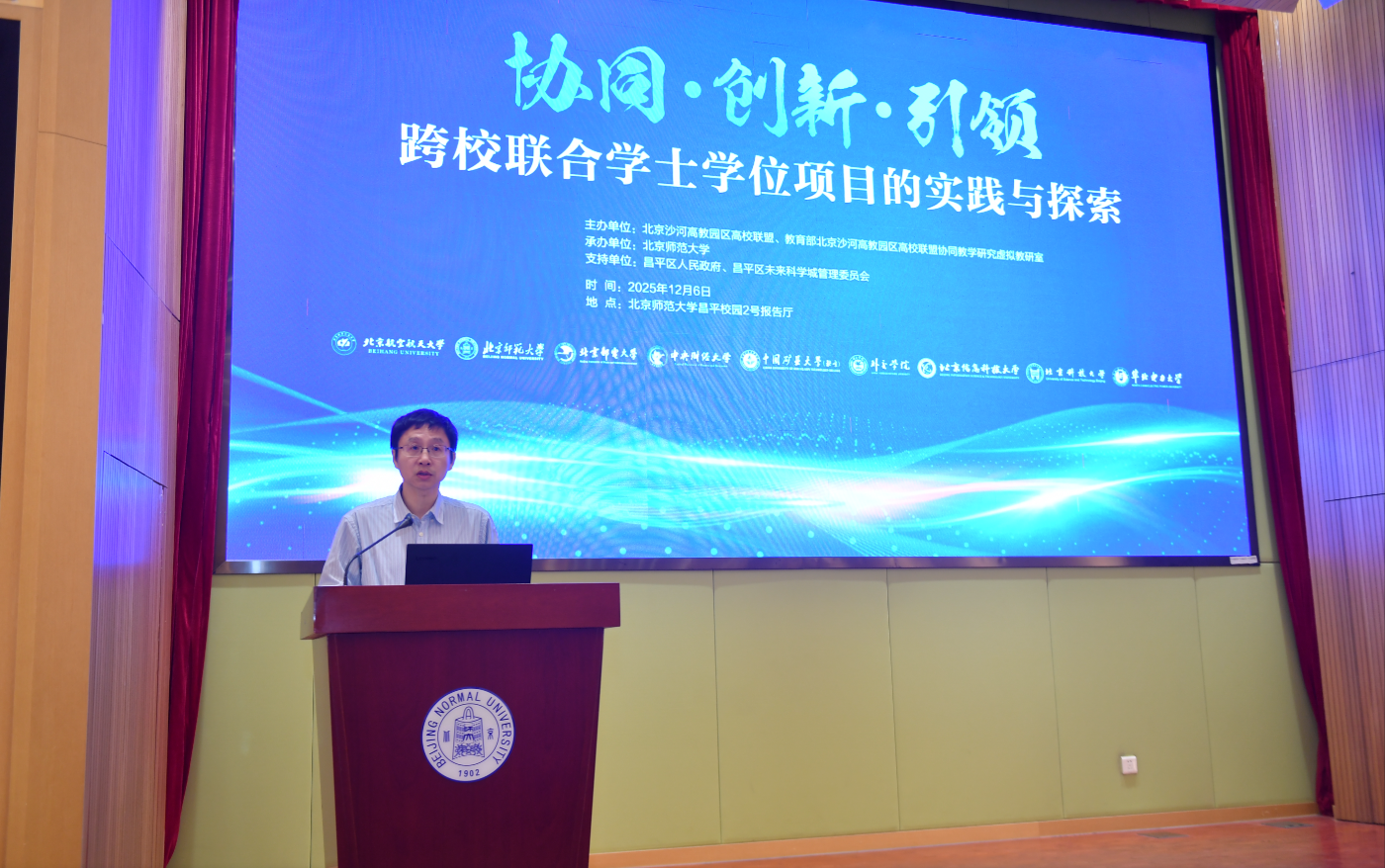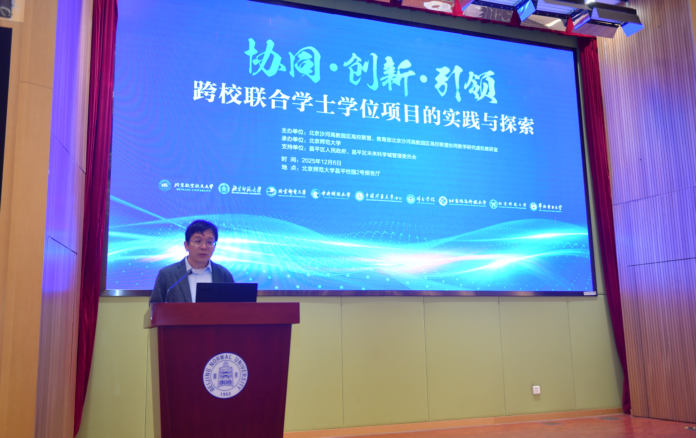 12月6日,“协同·创新·引领:跨校联合学士学位项目的实践与探索”论坛在北京师范大学昌平校园举行。本次论坛由北京沙河高教园区高校联盟、教育部北京沙河高教园区高校联盟协同教学研究虚拟教研室主办,北京师范大学承办,昌平区人民政府、北京未来科学城管理委员会支持。昌平区人民政府副区长高阳、北京师范大学副校长陈兴、北京航空航天大学副校长吴江浩出席论坛。沙河高教园区高校联盟9所高校的教学管理负责人、院系代表及项目负责人等参加论坛。论坛由北京师范大学副教务长、教务部(研究生院)培养处处长窦非和北京航空航天大学教务部部长钱政主持。