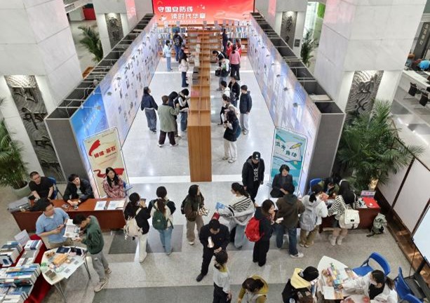 4月13日至17日,由图书馆主办的“开卷探奇趣,展卷阅新知——2026年中文图书闪借书展”在海淀校园图书馆一层大厅举办。