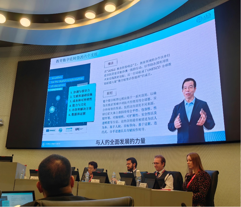 北师大智慧教育学院院长黄荣怀受邀通过视频方式,在分论坛上作主题为“数字化转型与教育创新:中国经验的启示”的报告。