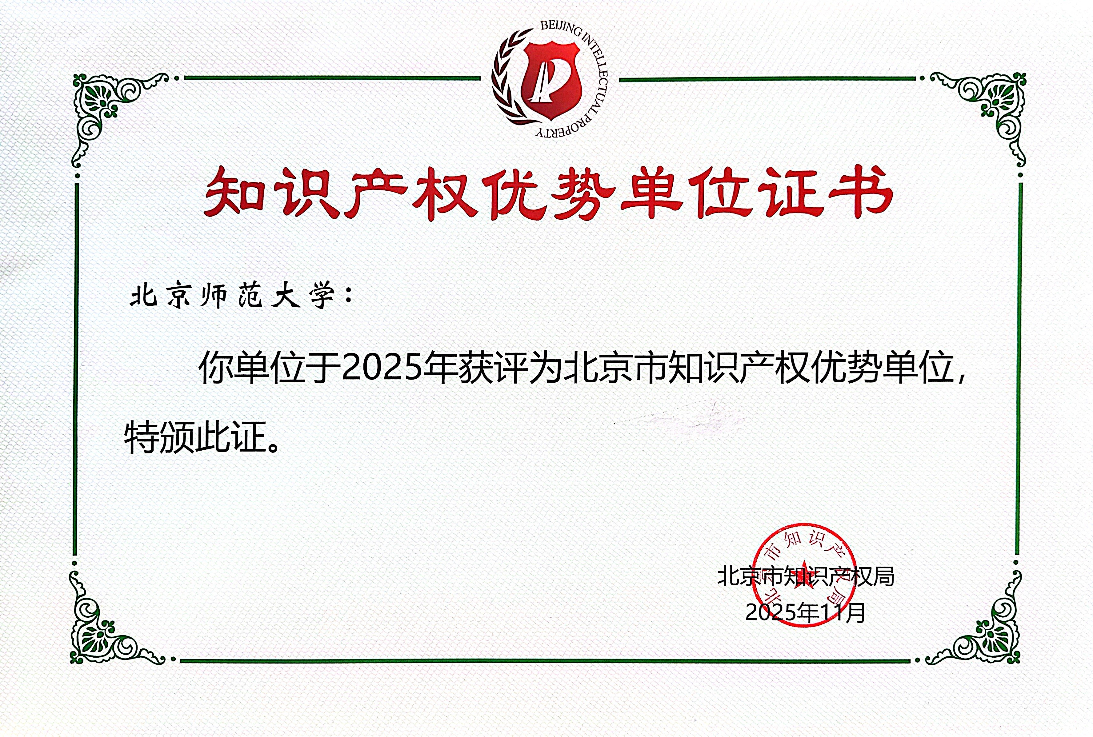 近日,北京市知识产权局正式发布2025年度知识产权试点单位与优势单位认定名单。北京师范大学以在知识产权创造、运用、保护、管理及服务全链条工作中的卓越表现与显著成效,获批“北京市知识产权优势单位”。这标志着学校科技创新体系与知识产权工作迈入高质量发展新阶段。
