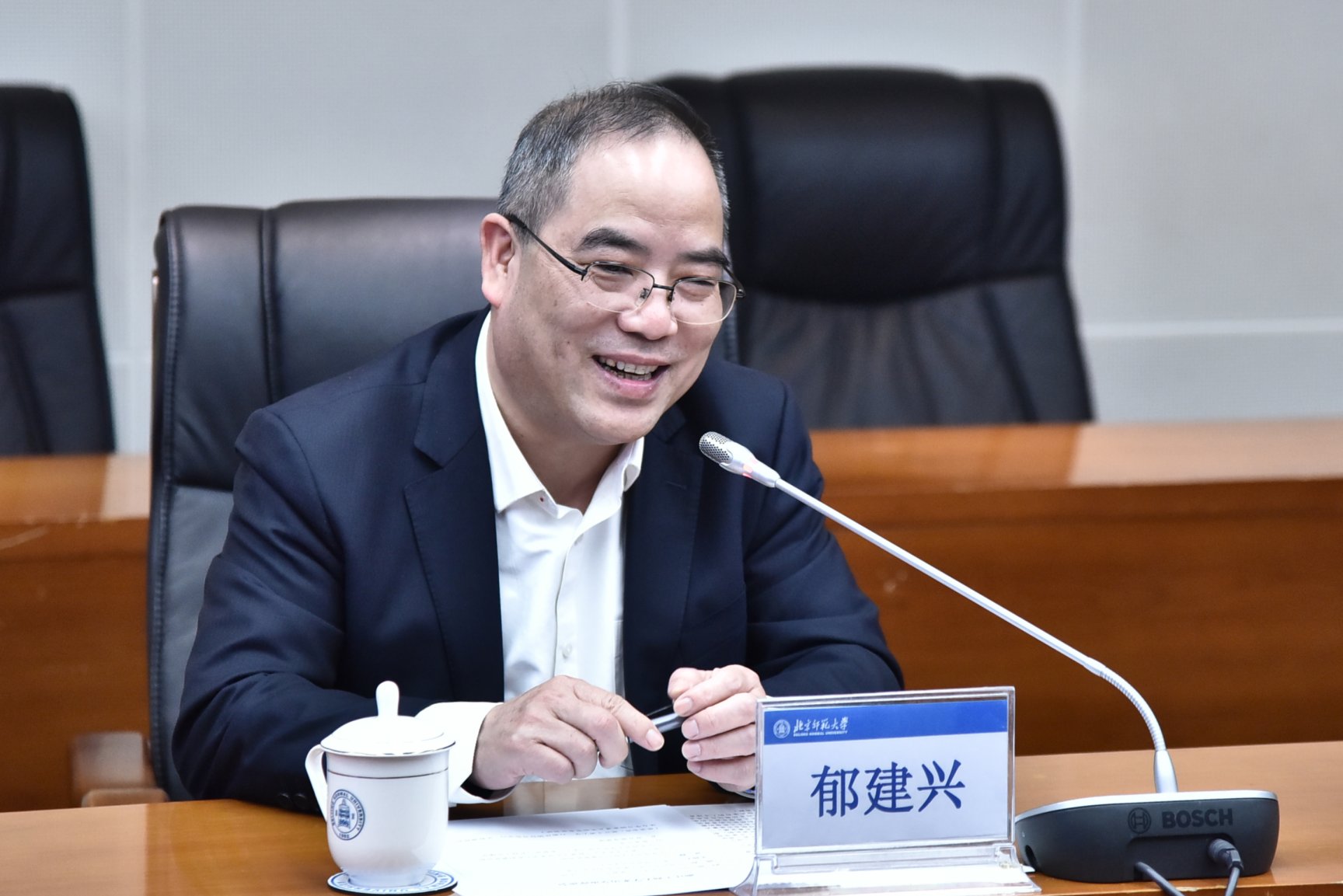郁建兴对学校的热情接待表示衷心的感谢,并介绍了浙江工商大学的基本情况和此行的调研目的。他表示,北师大在诸多学科领域具有较强优势,希望双方建立长期稳定合作机制,加强学分互认、专业合作、师生互派等方面的交流合作。